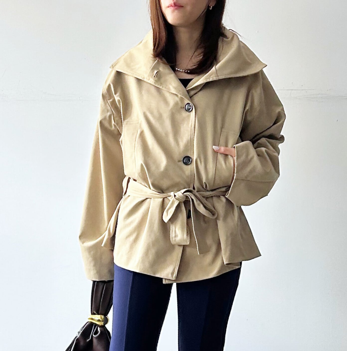 ウォッシャブル仕様のフェイクレザーを使用した、バルーンシルエットのジャケット。 レザー特有の重さやケアの手間を感じさせず、自宅で洗えるイージーケアが魅力です。 雨の日や汗ばむ時期でも気兼ねなく着られ、デイリー使いに最適。 シャツ襟デザインでクリーンな印象をプラスしつつ、裾と袖口を絞った丸みのあるフォルムが女性らしさを演出。