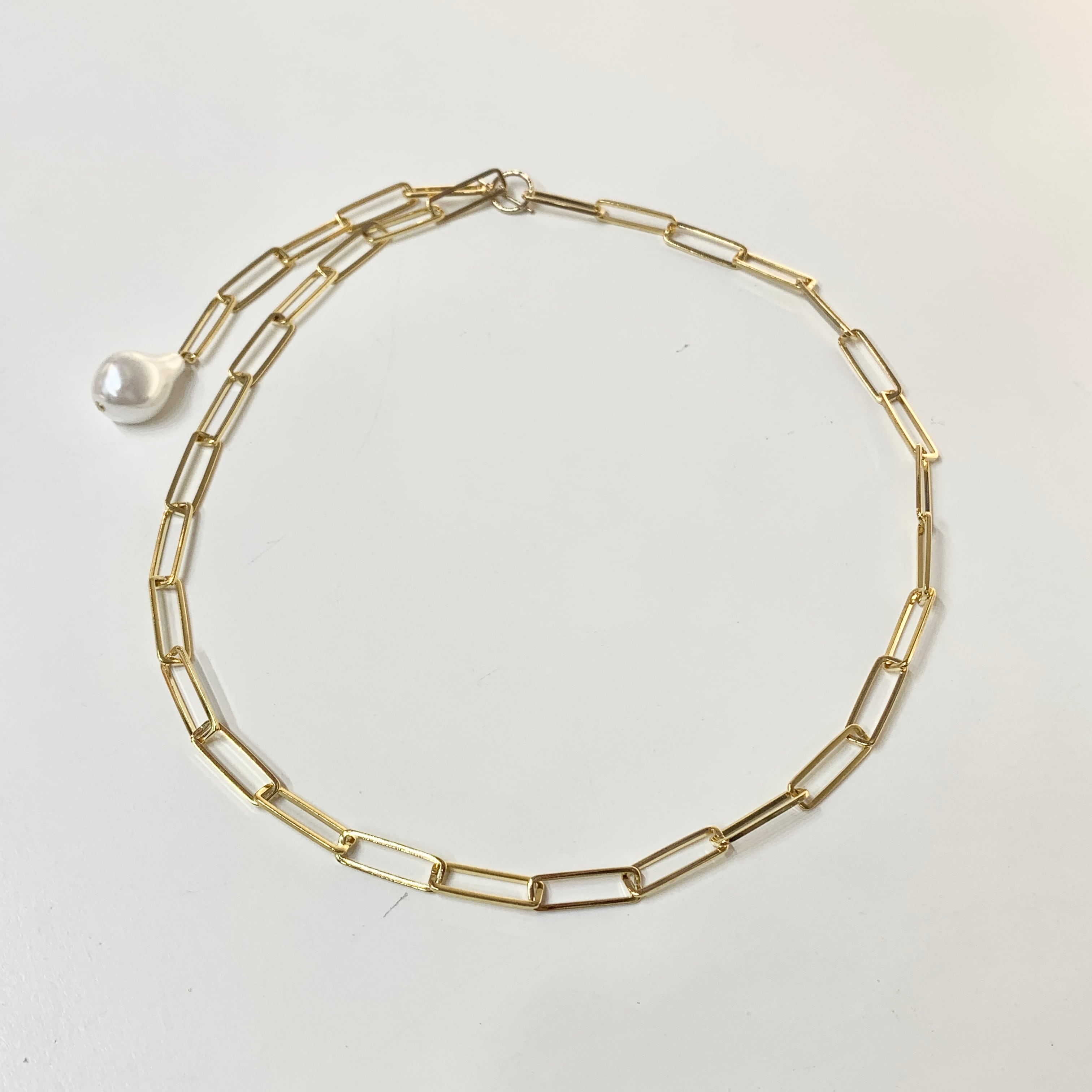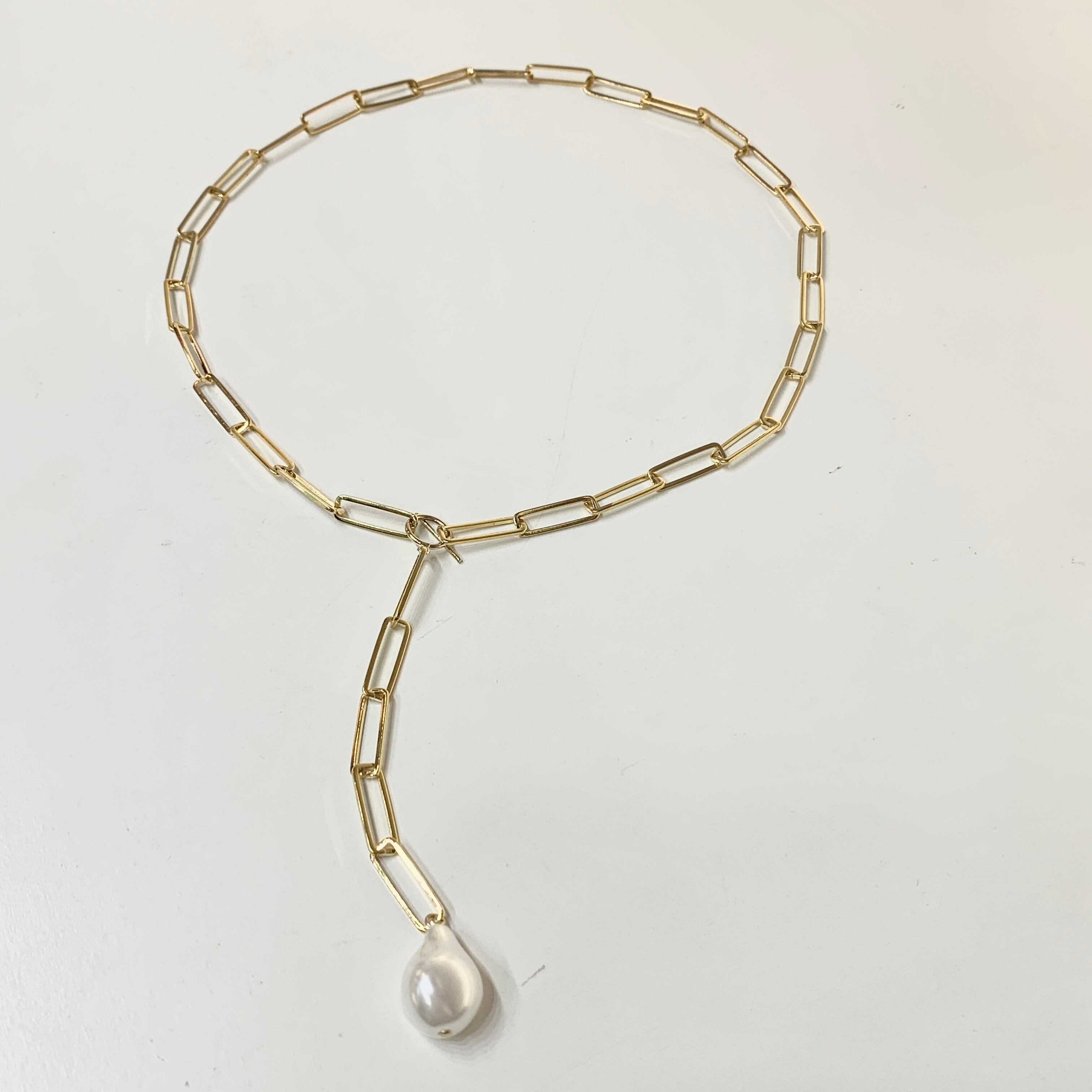 COMME JEWELRY"BAROQUE PEARL CHAIN NECKLACE"GOLD