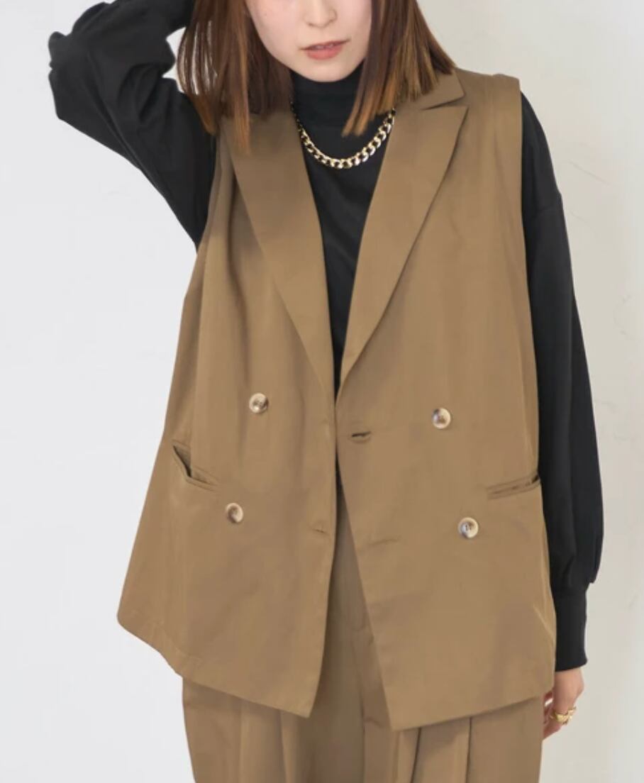 袖が取り外しができてテーラードジャケットがジレになるシーズンレスでお召しいただけます。