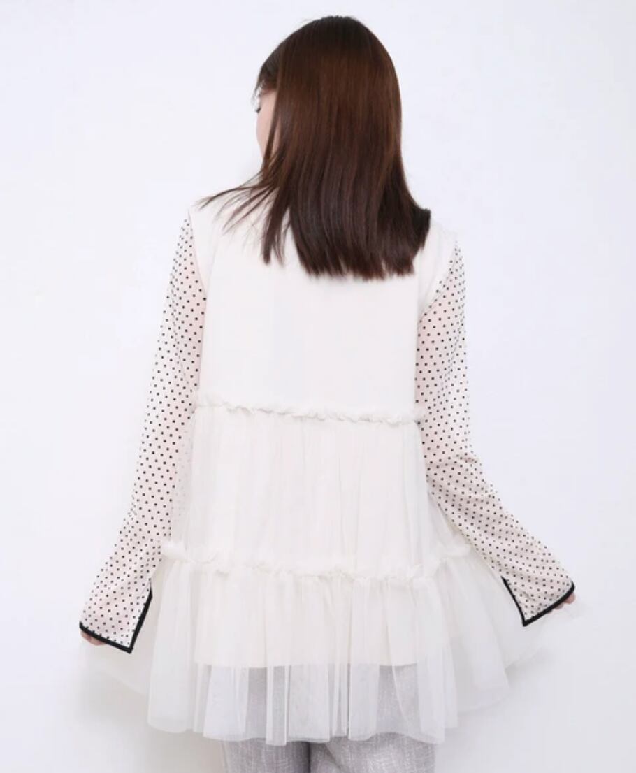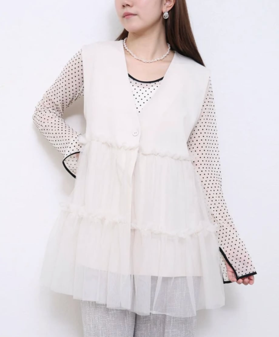 ■ ふんわりティアードのチュールフリルがガーリーなジレ。
