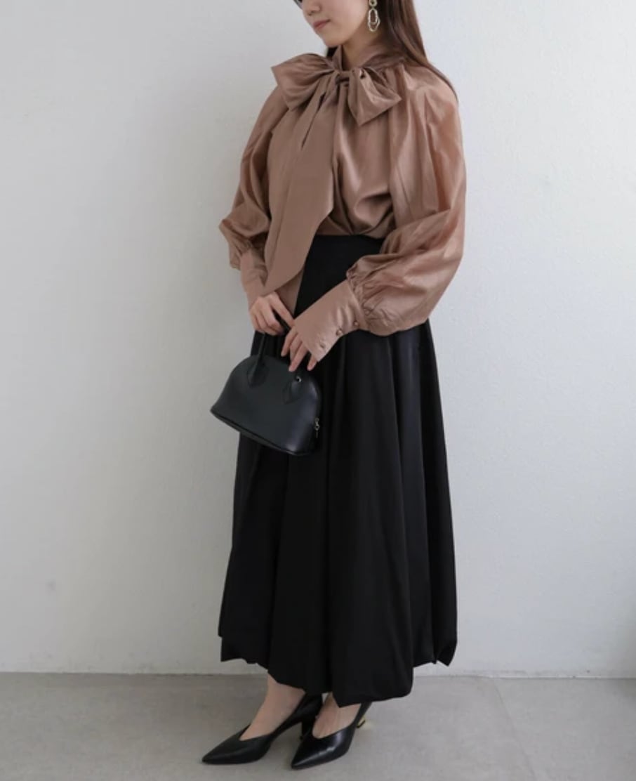 ■ 前後2WAYで着られるブラウスはリボン部分を後ろに持ってくればクラシカルに。