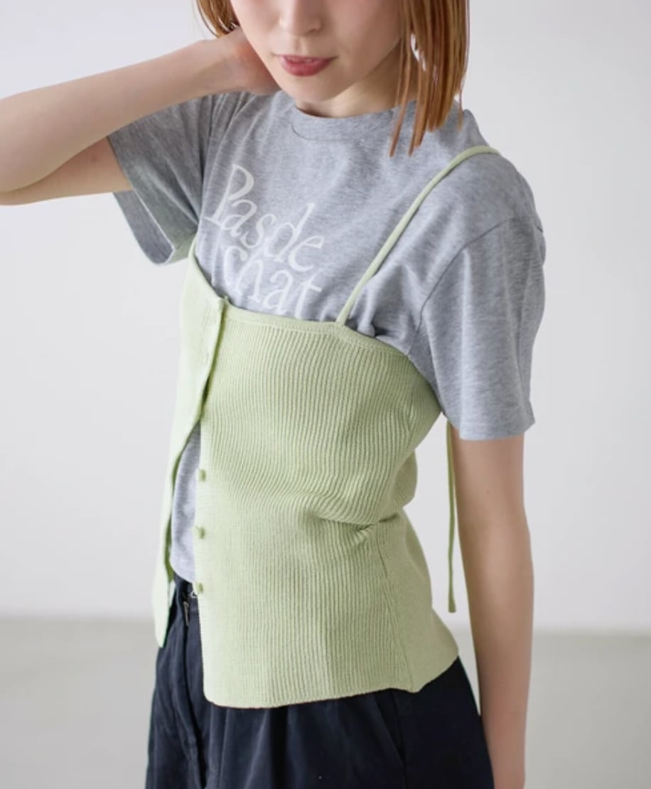 ナンバーミーTOKYO"BUTTON KNIT VEST" GREEN