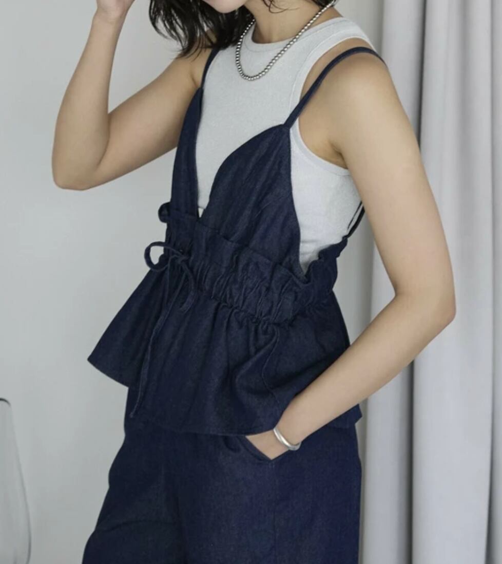 ▪️ペプラムフリルが目を引く、今っぽさ満点のデニムコンビネゾン。