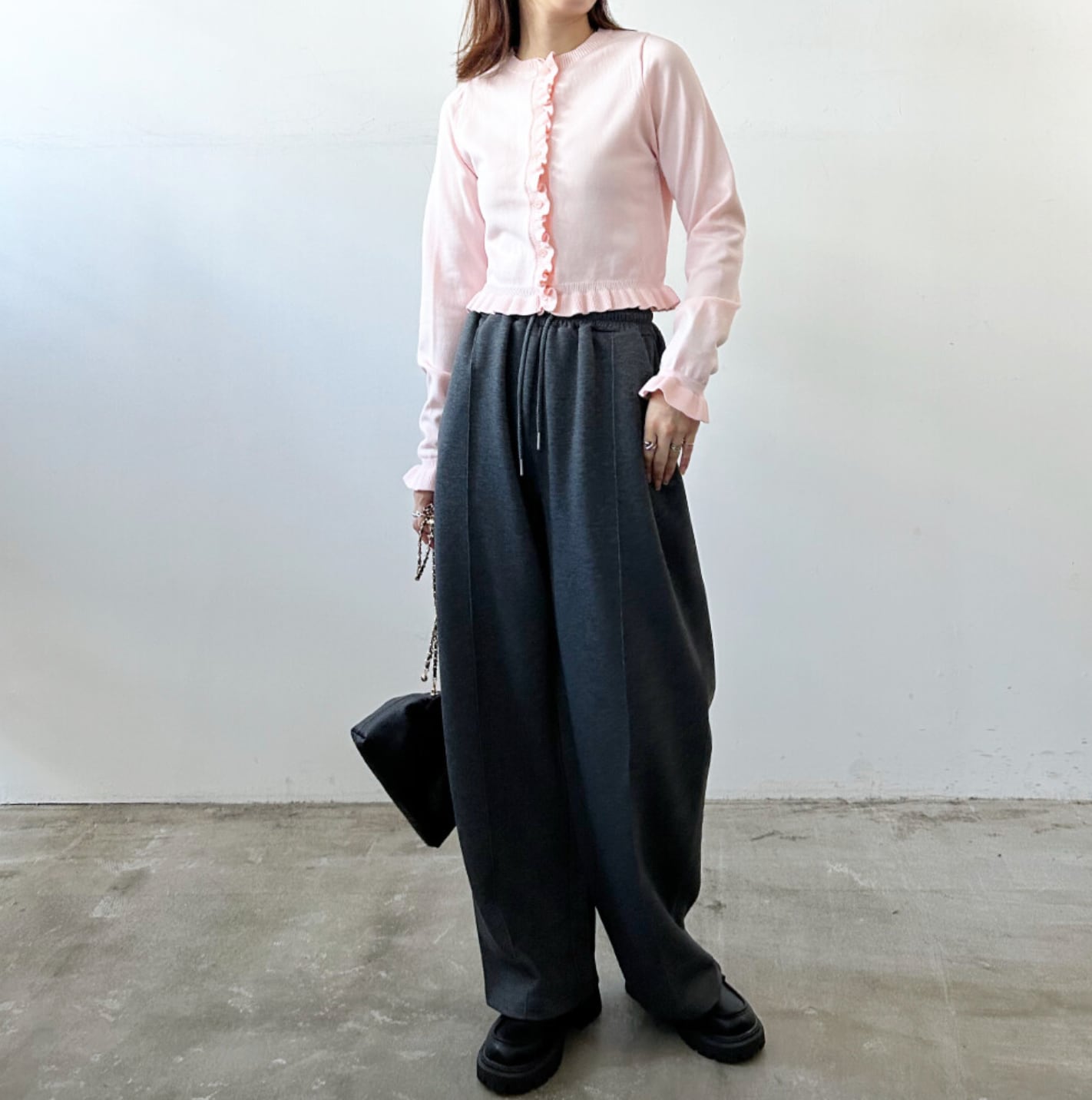 ややコンパクトな丈感で、ボトムスとのバランスが取りやすく、スラックスやスカート、デニムまでボトムを選びません◎