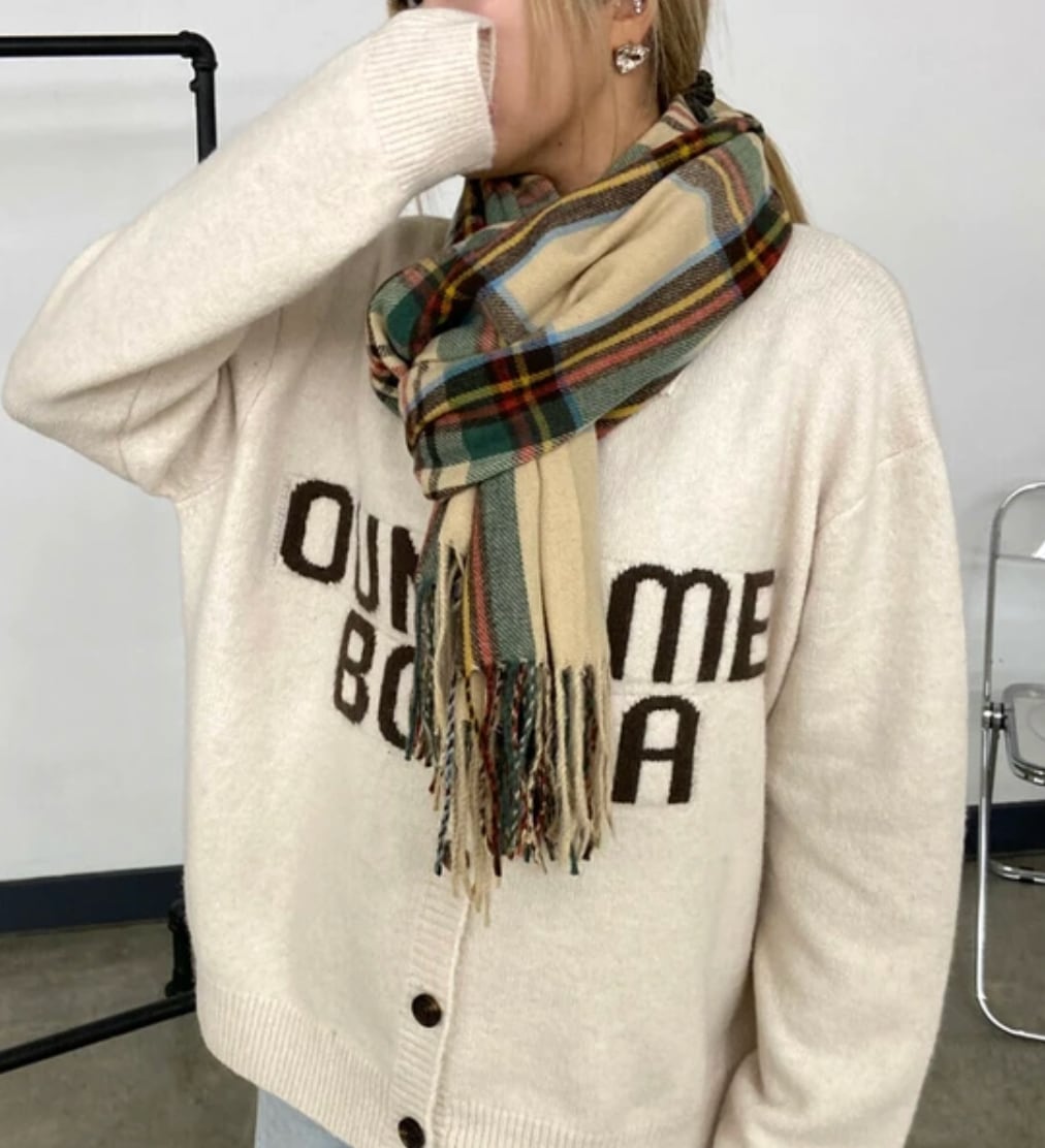 Its large, long size means you can tie it, wrap it around your neck, or simply throw it on like a scarf, allowing you to enjoy arranging it to suit your outfit of the day.