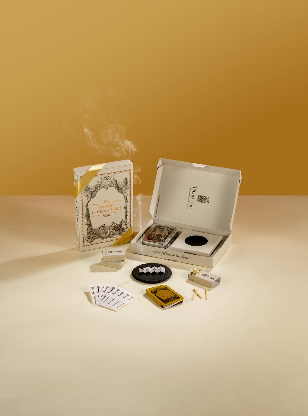 ◆This special gift set includes a natural stone tray that can be used with the paper incense.