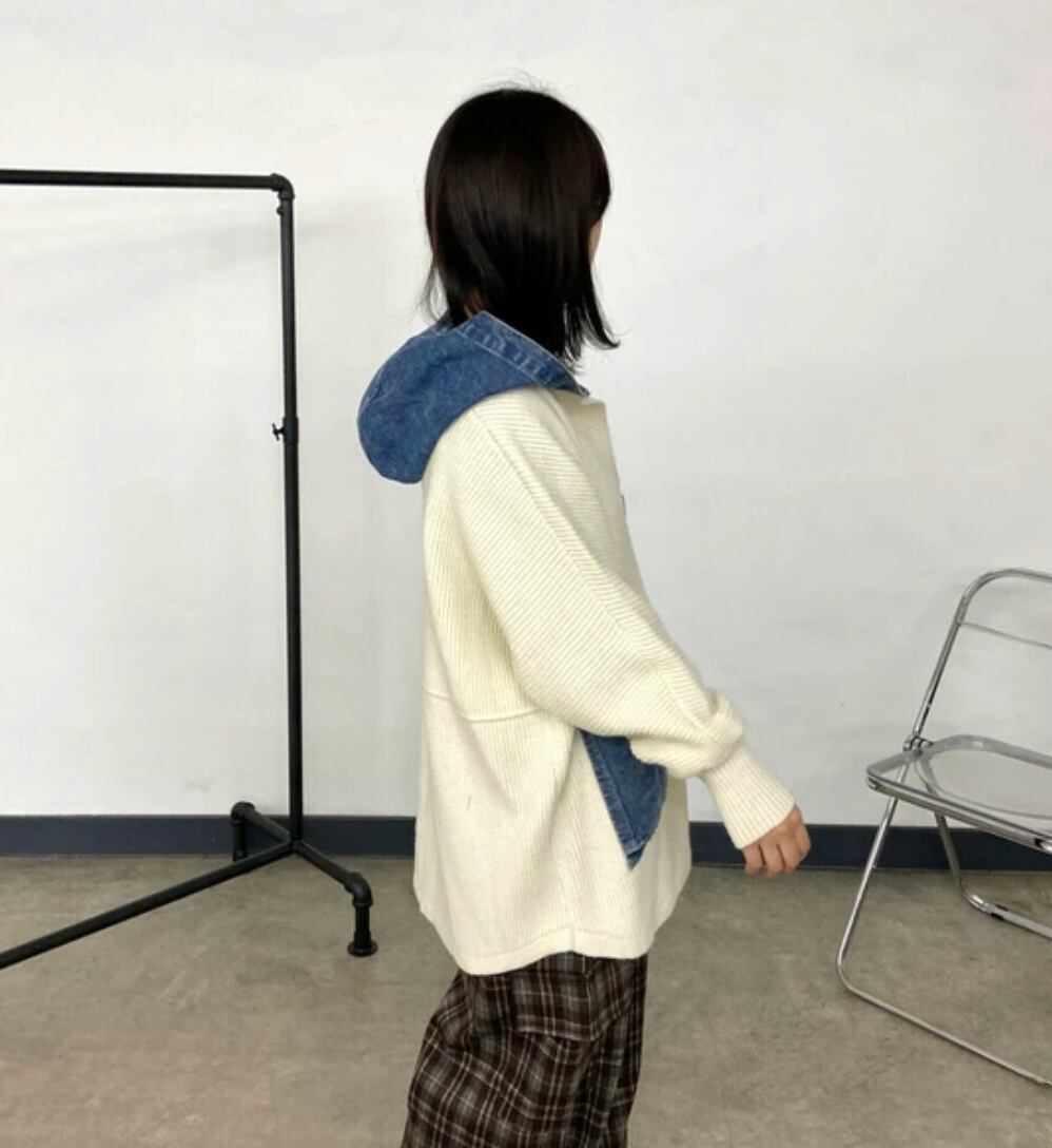 ■ 着るだけで存在感のあるデニム×ニットがドッキングしたニットカーディガン。