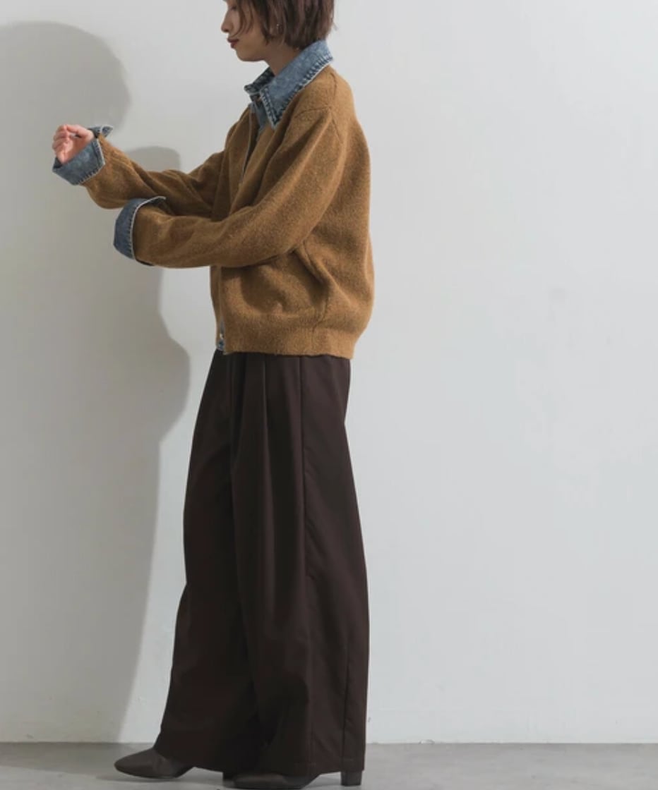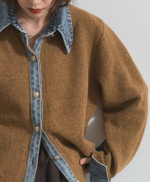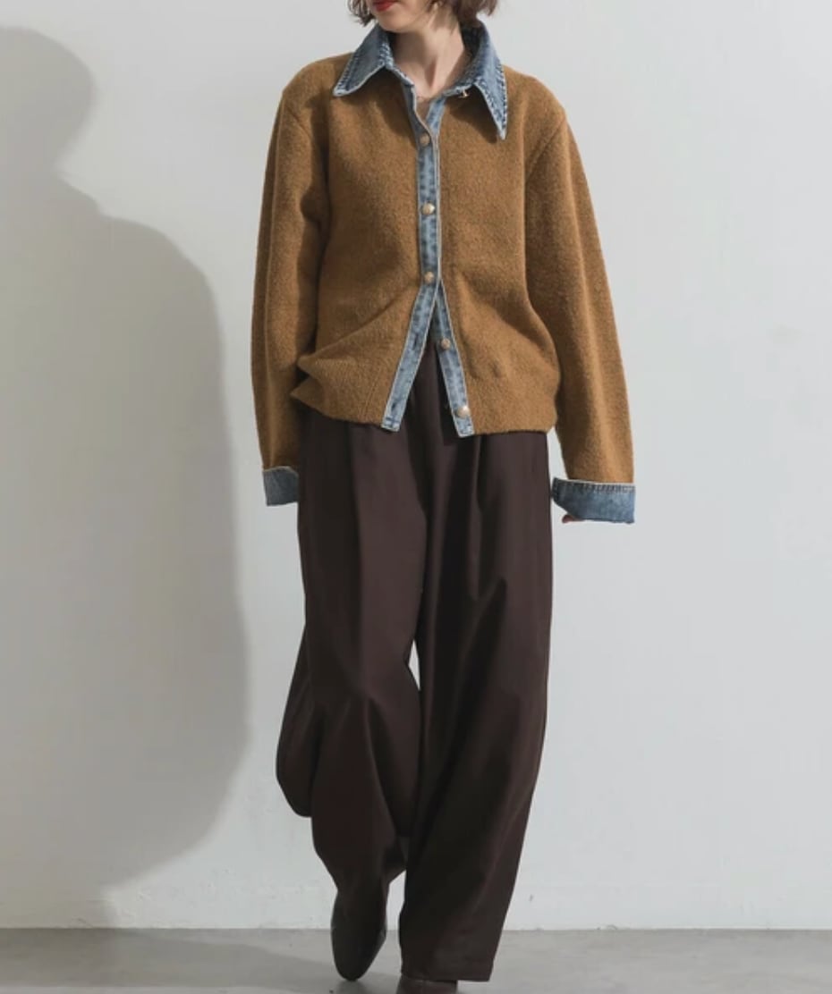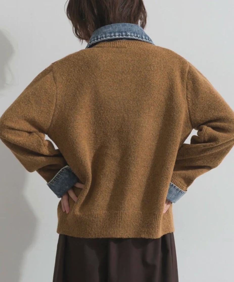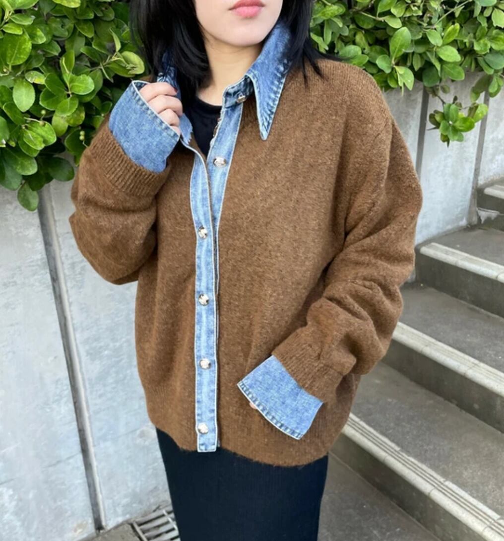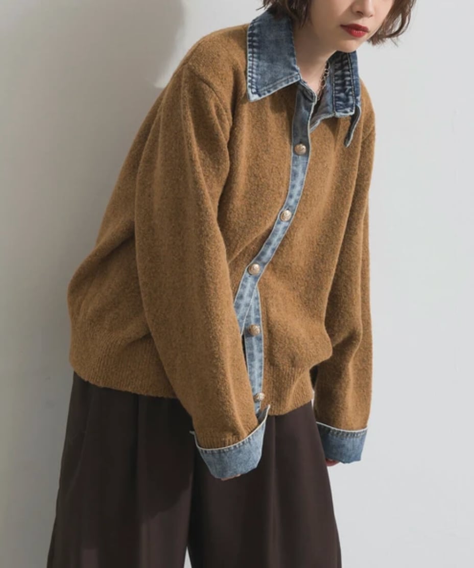 ■ 着るだけで存在感のあるデニム×ニットがドッキングしたニットカーディガン。