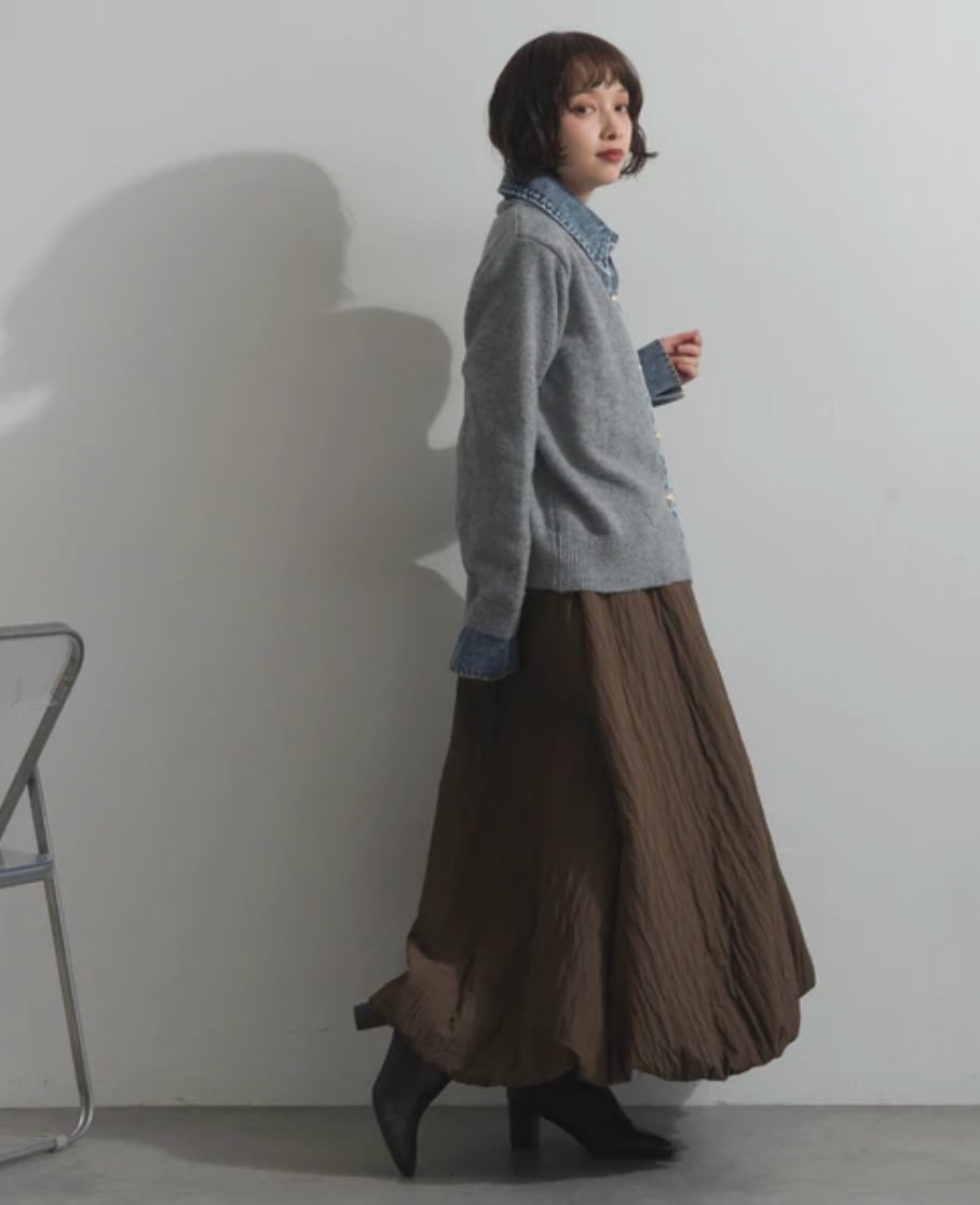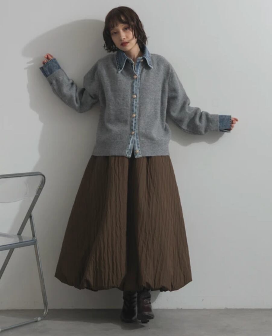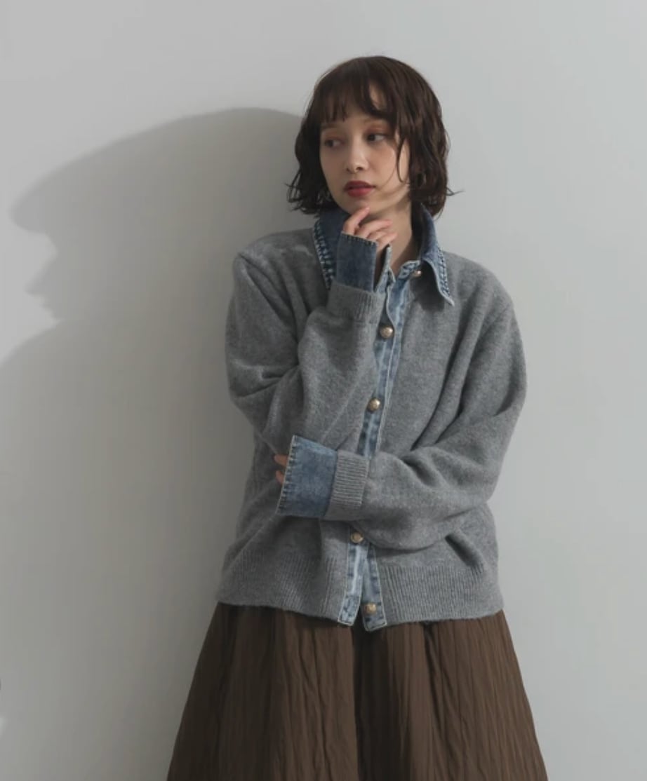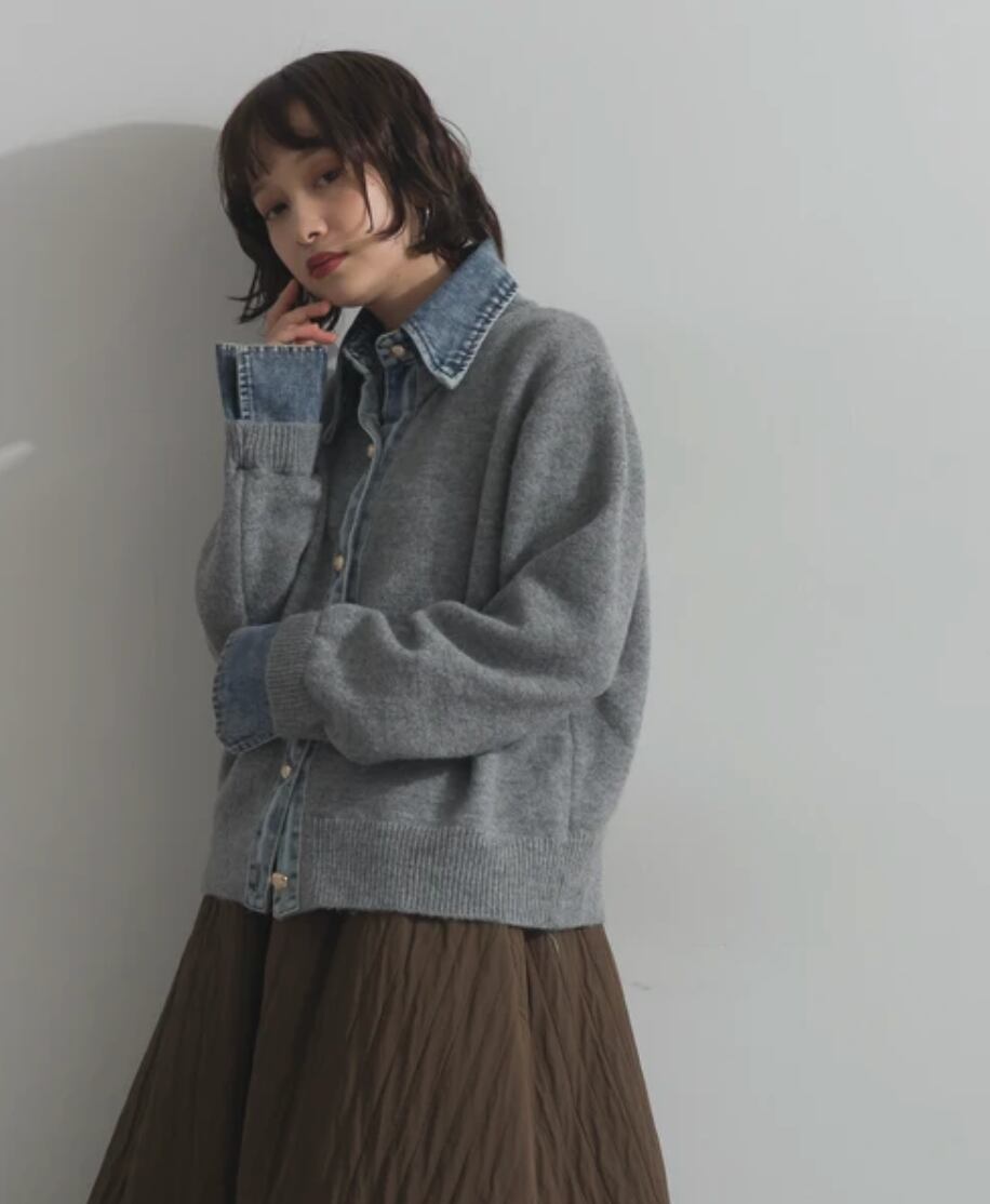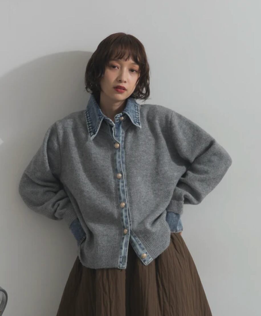 ◆This knit cardigan combines denim and knit for a statement look.