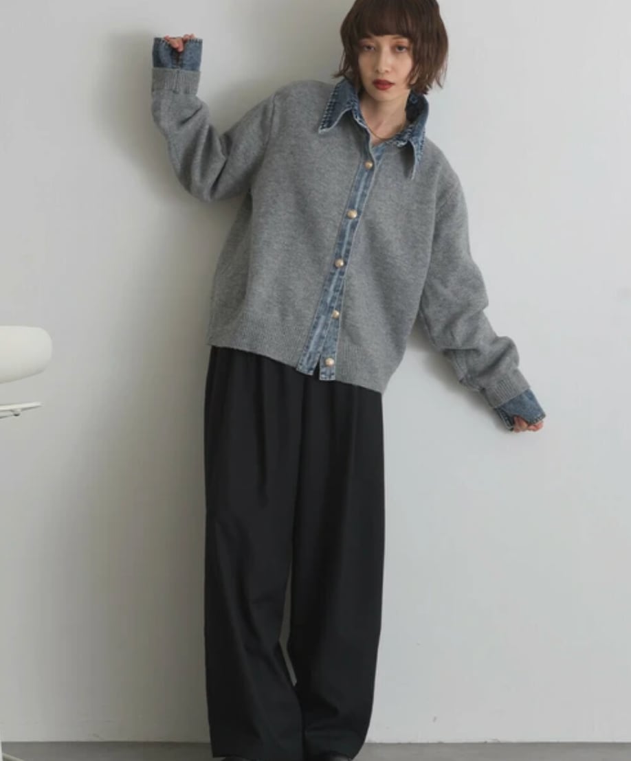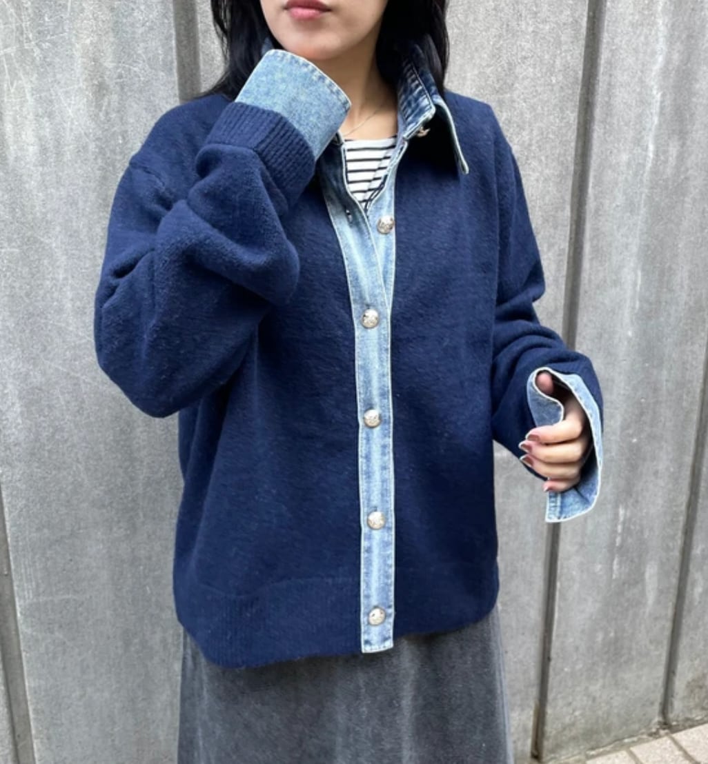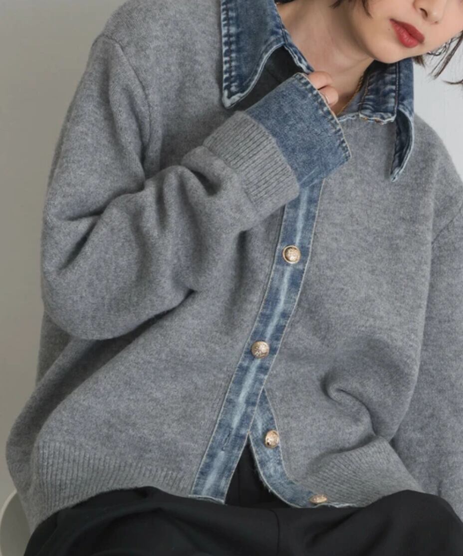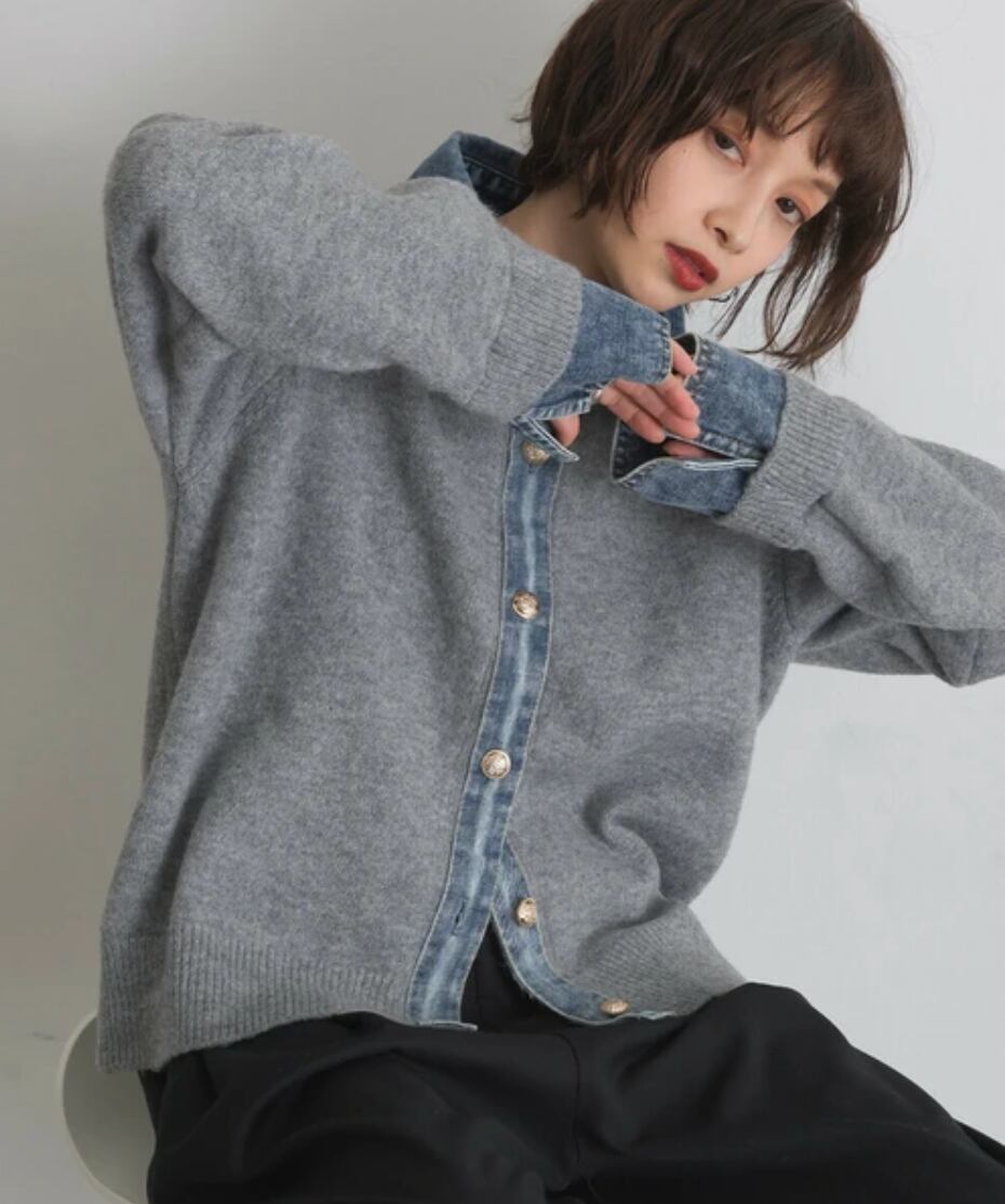 ■ 着るだけで存在感のあるデニム×ニットがドッキングしたニットカーディガン。