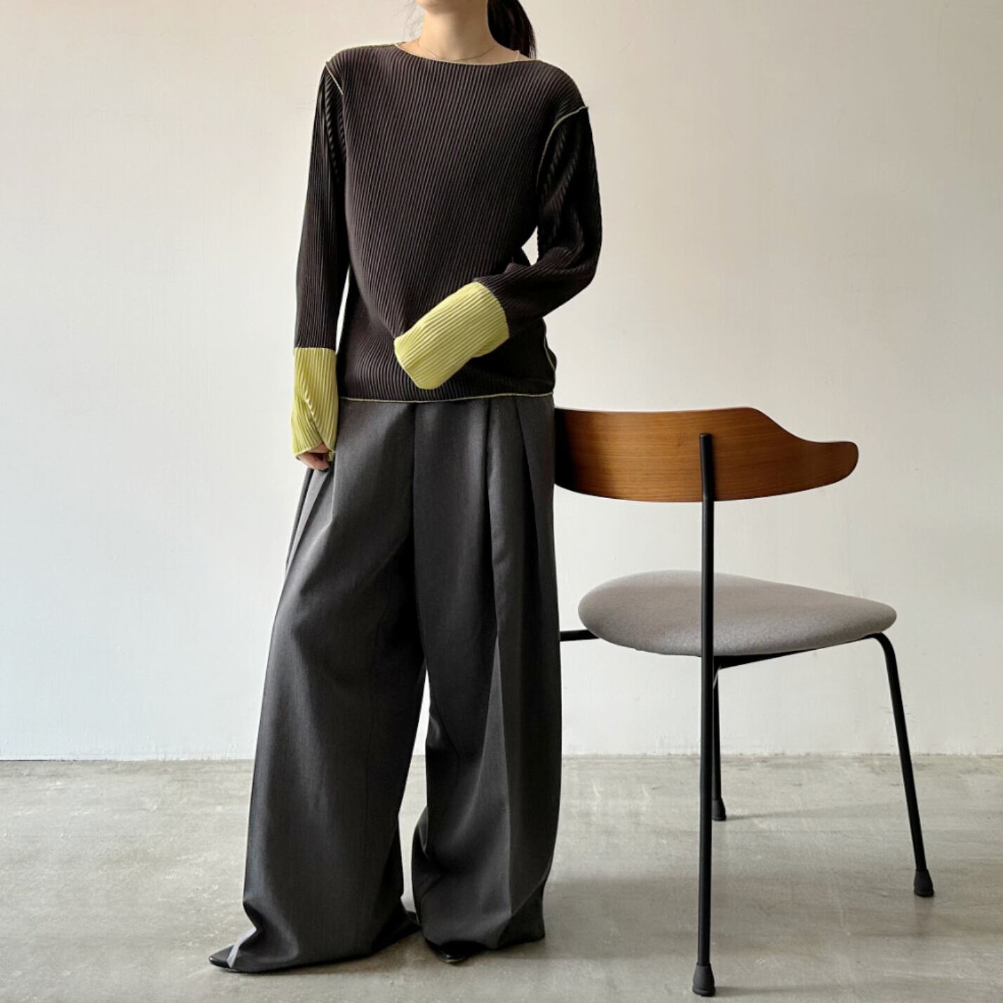 ナンバーミーTOKYO"CREW KNECK BY COLOR PLEATS PULLOVER"BLACK
