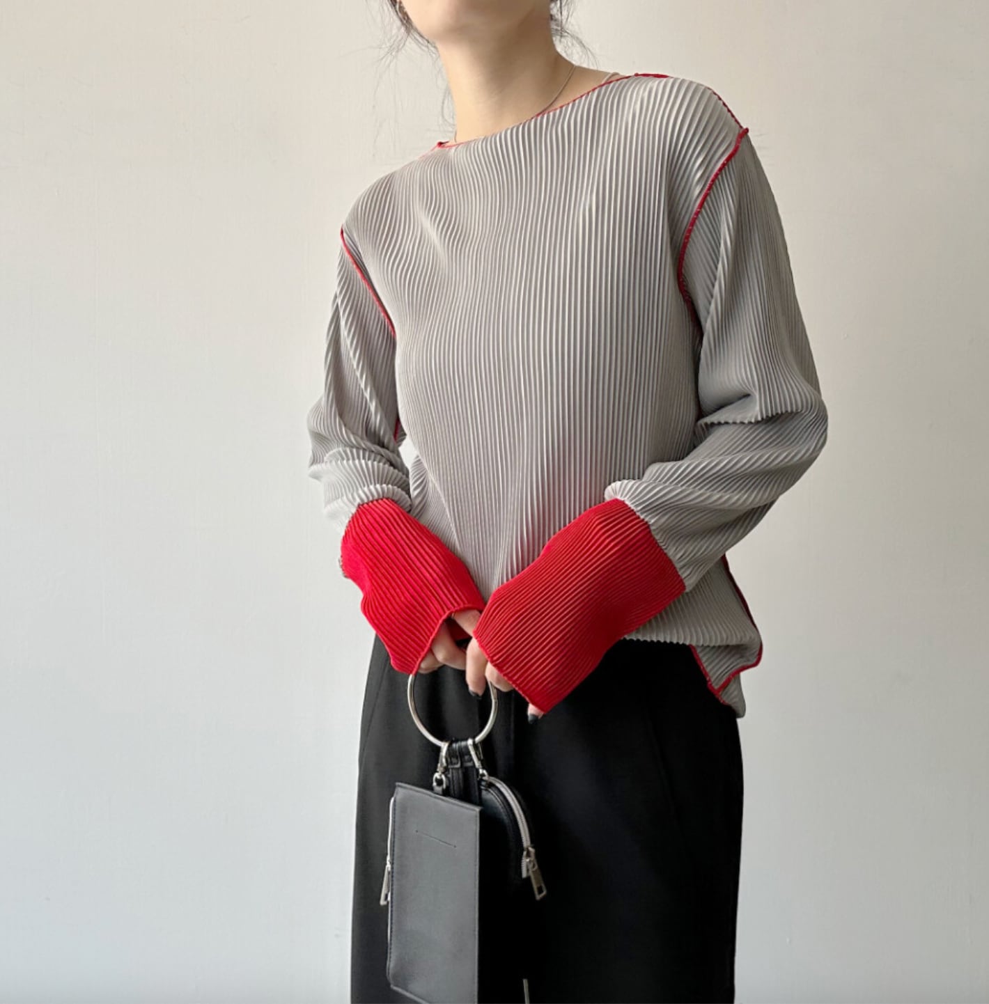 ナンバーミーTOKYO"CREW KNECK BY COLOR PLEATS PULLOVER"GRAY