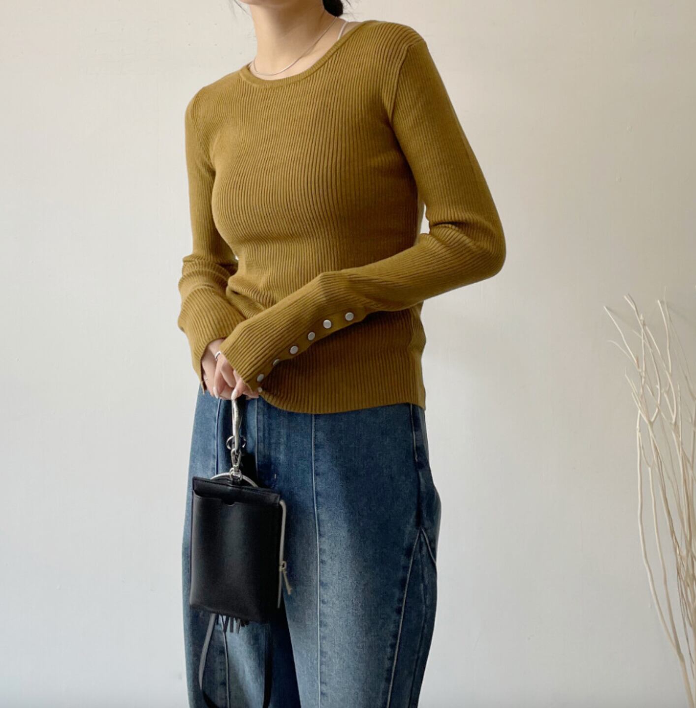 シンプルなデザインながら袖部分の釦がアクセントに!