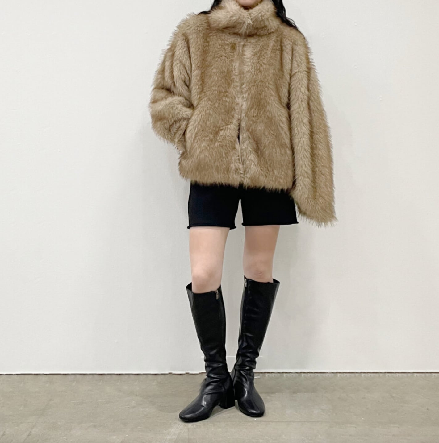 ■軽やかな着心地が魅力のフェイクファー素材を使用。