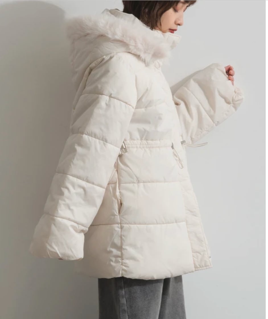 ■ウエストマークでメリハリのあるシルエットが叶うベルト付き中綿コート。