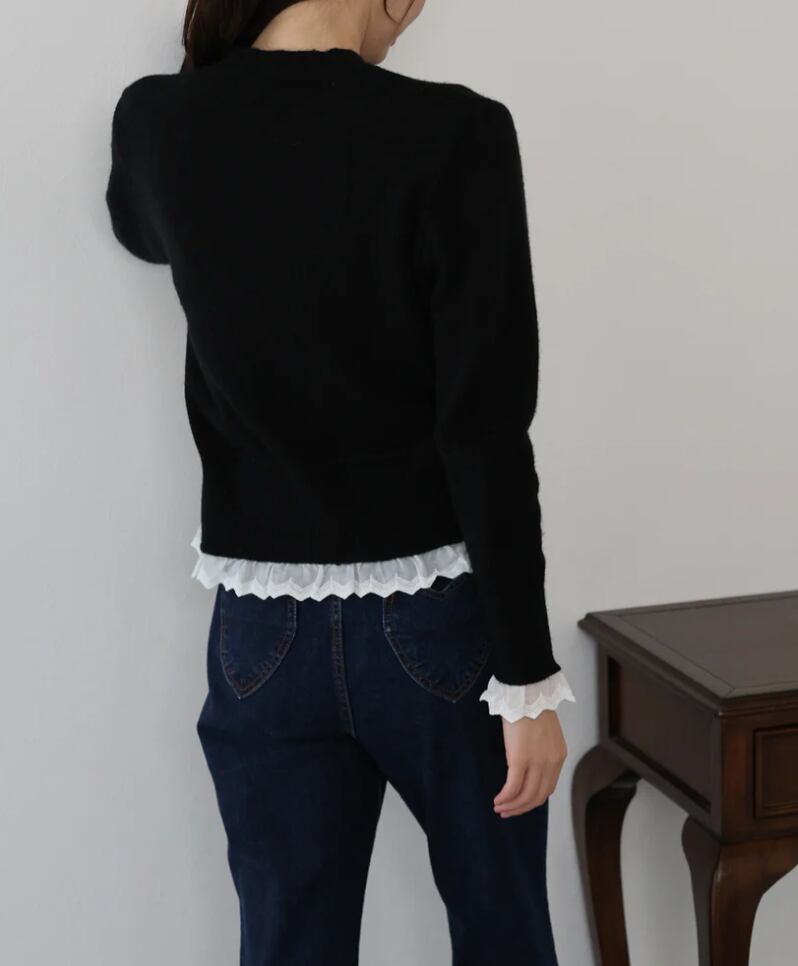 ◆This knit cardigan features lace on the cuffs and hem for a cute, grown-up look.