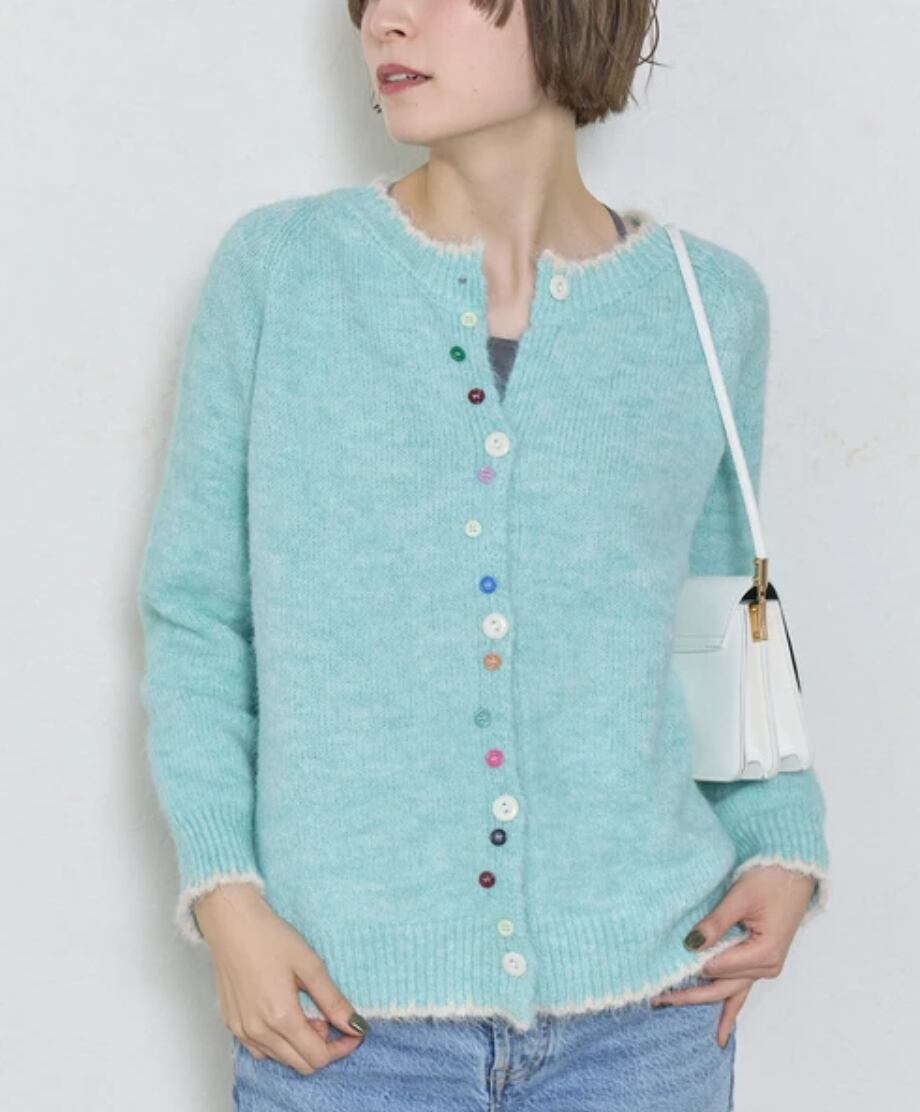 ■大小の色とりどりのボタンがキュートな印象のカーディガン。