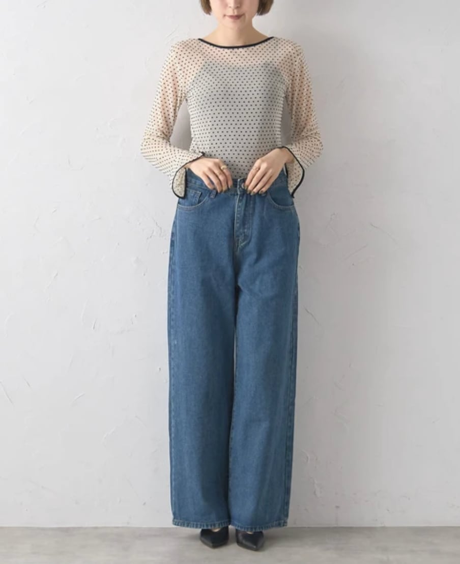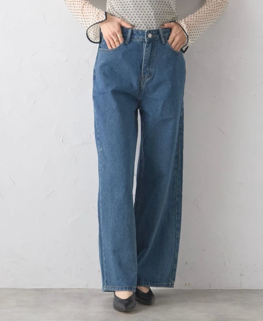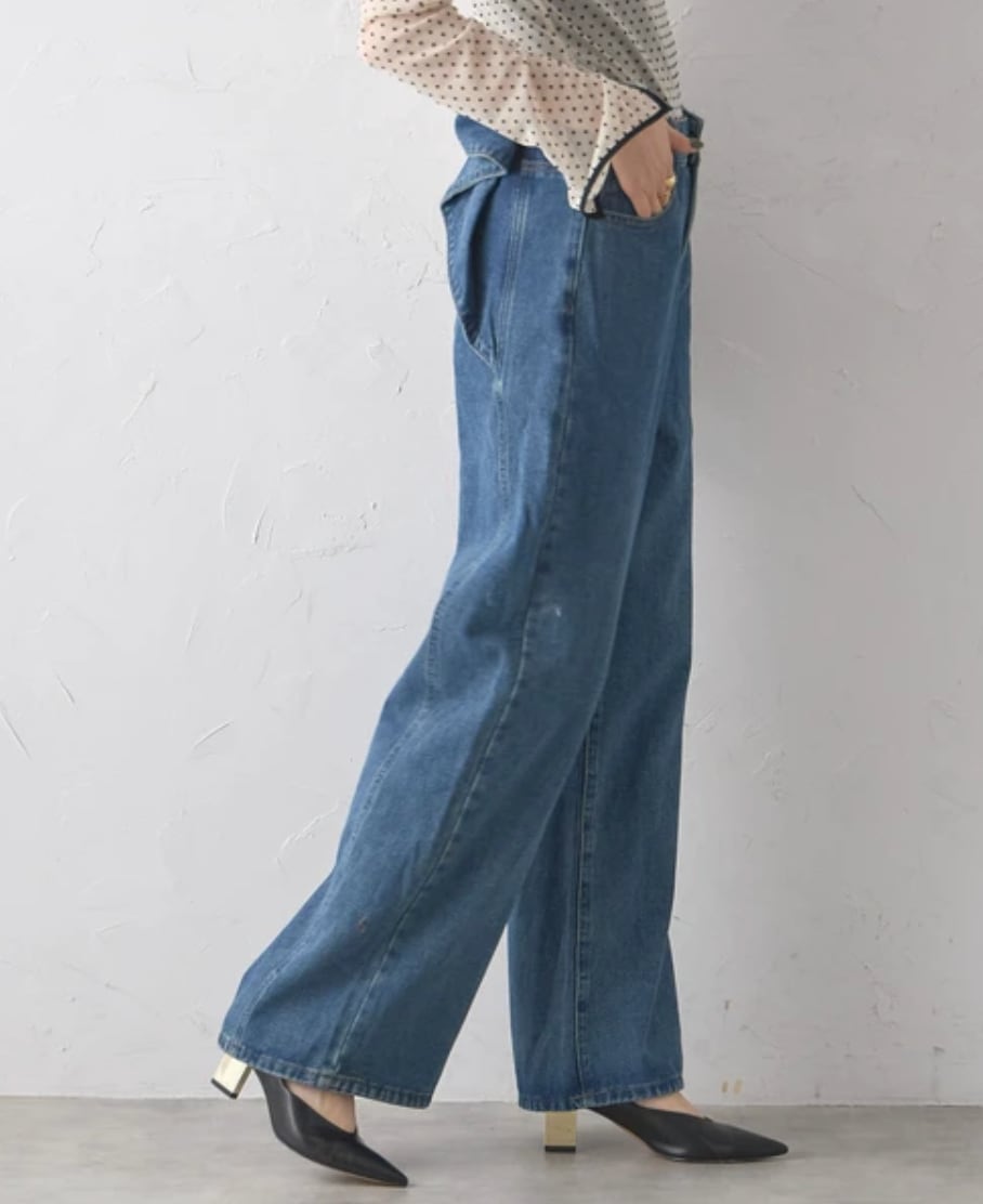 シーズンレスで着れるデニムの中でもゆったりした着こなしが出来るワイドパンツはカジュアルな着こなしに最適の1枚。