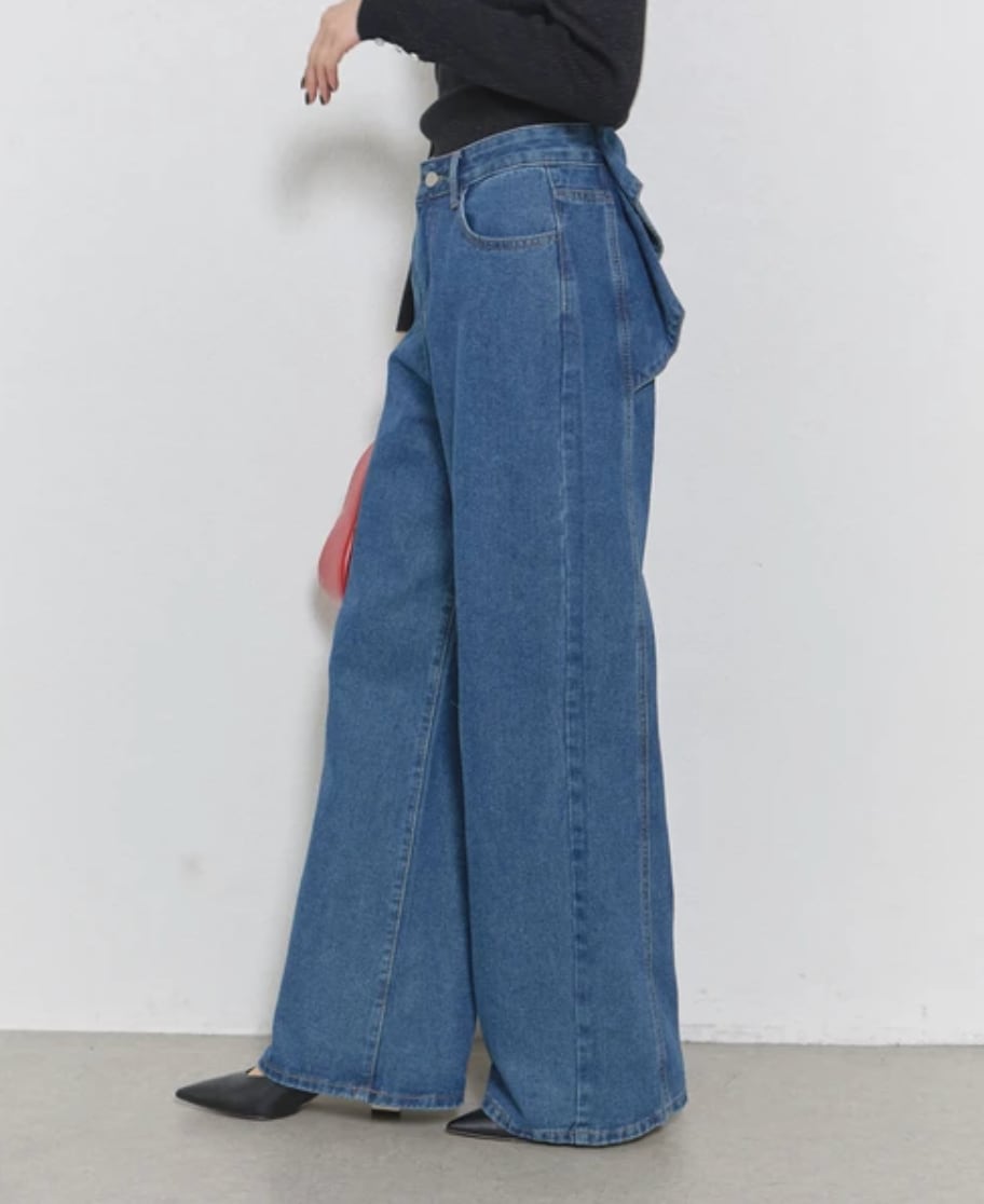 ▪️リボンデザインのバックスタイルが可愛いデニムパンツ。
