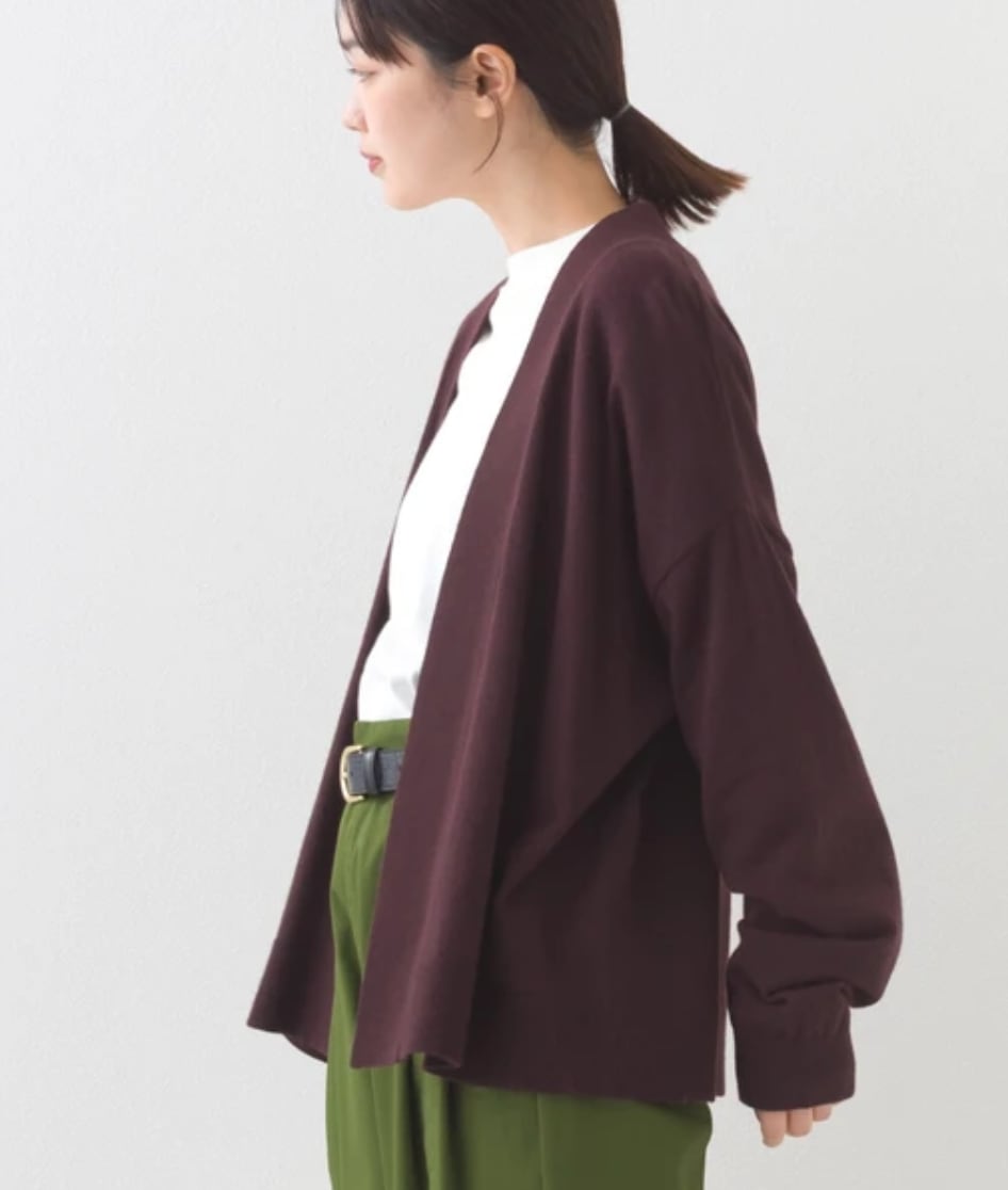 短めの丈感はワンピースやハイウエストのボトムスとも相性がよく、羽織るだけでコーディネートに抜け感をプラス。