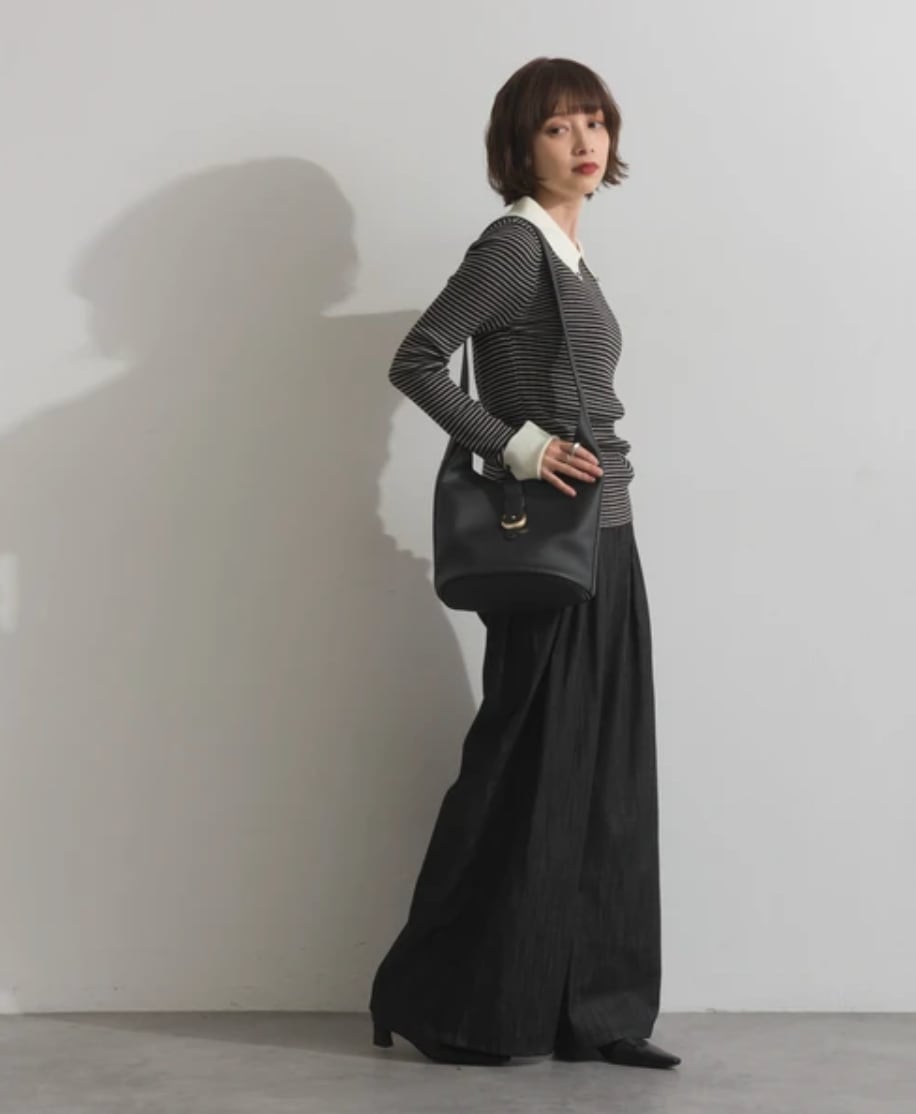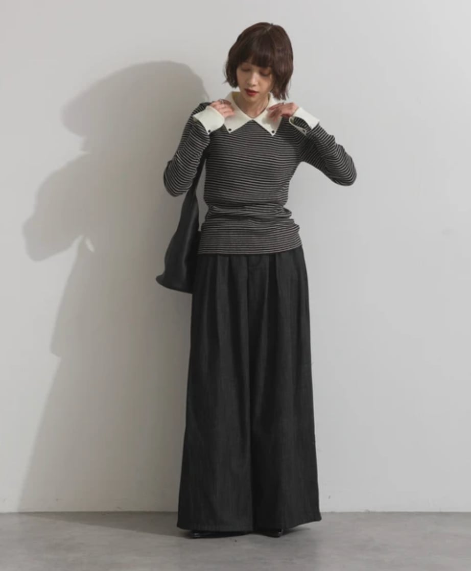 ■伸縮性のあるコットン混リブニット素材を使用。