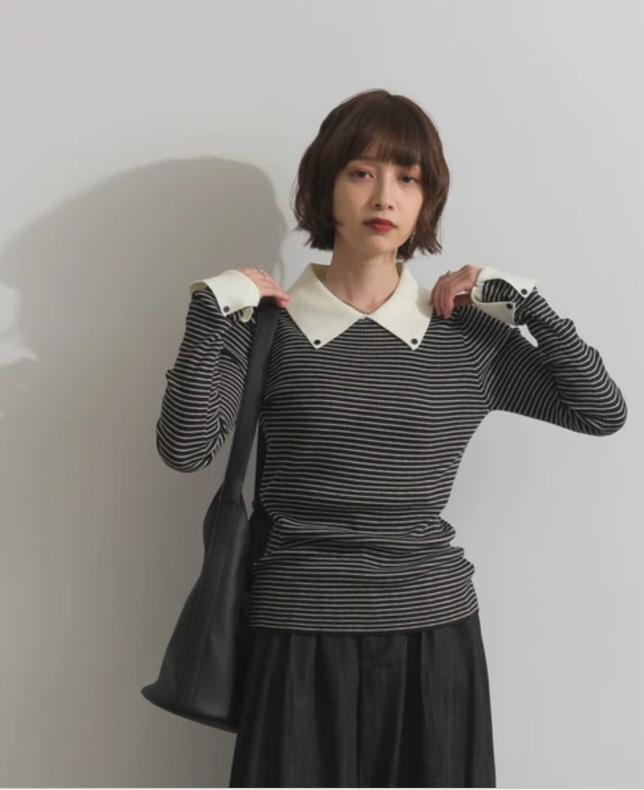 ナンバーミーTOKYO"RIB KNIT POLO CUT AND SAW"BORDER