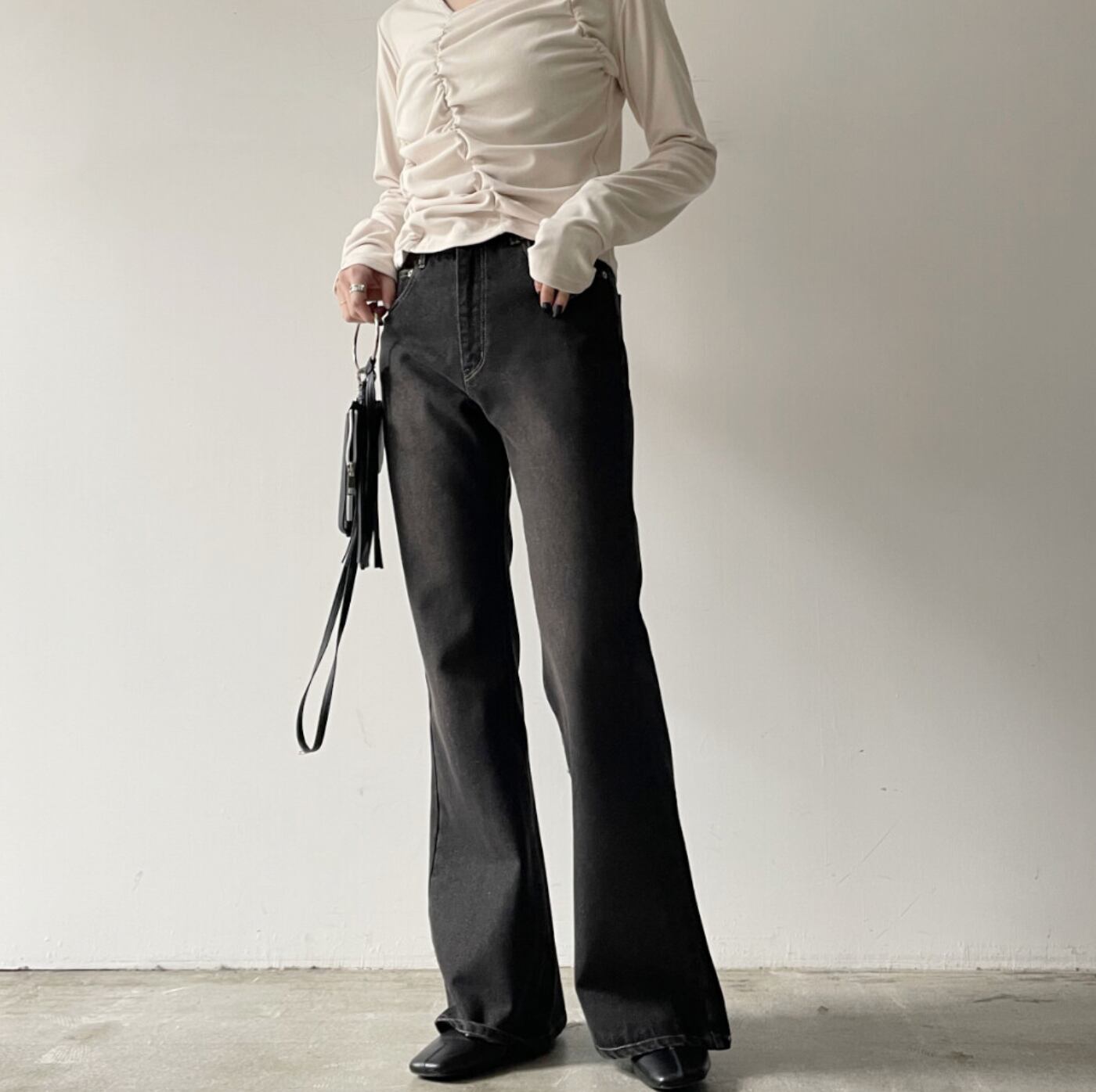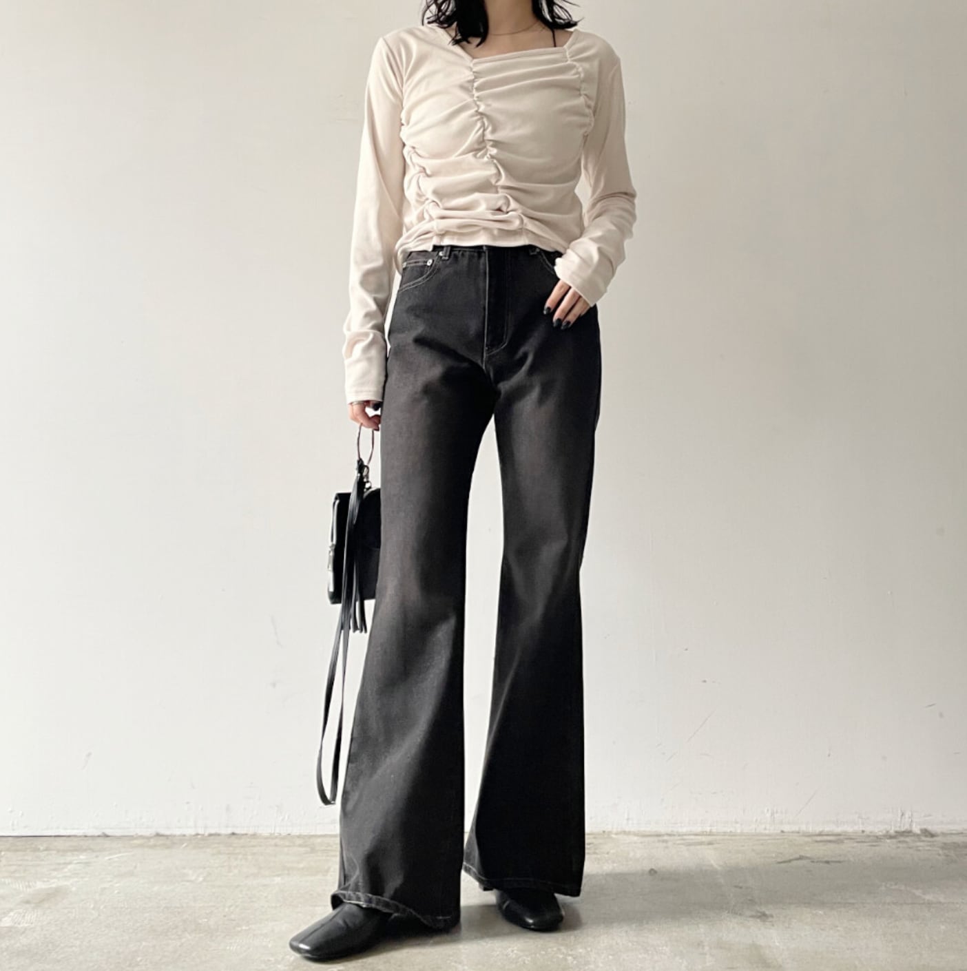 ナンバーミーTOKYO" DENIM FLARE PANTS"BLACK