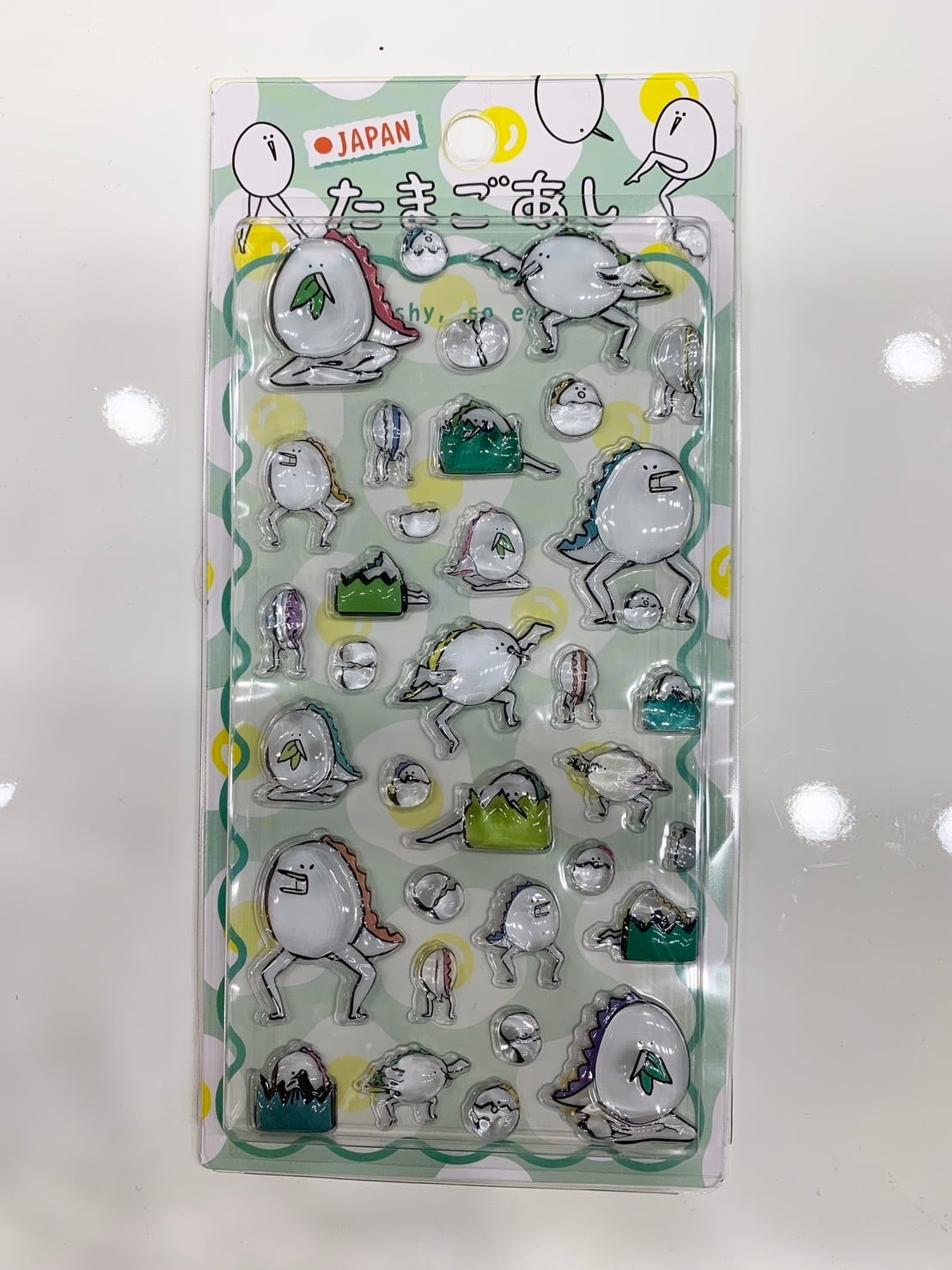 人気のぷっくりシールが、たまごあしデザインで登場!ころんとした立体感と、ゆるい表情がなんともいえない可愛さです♪手帳やスマホケース、小物デコにもぴったり◎思わず集めたくなる、今注目のシールシリーズです。お友達とのシール交換にも!