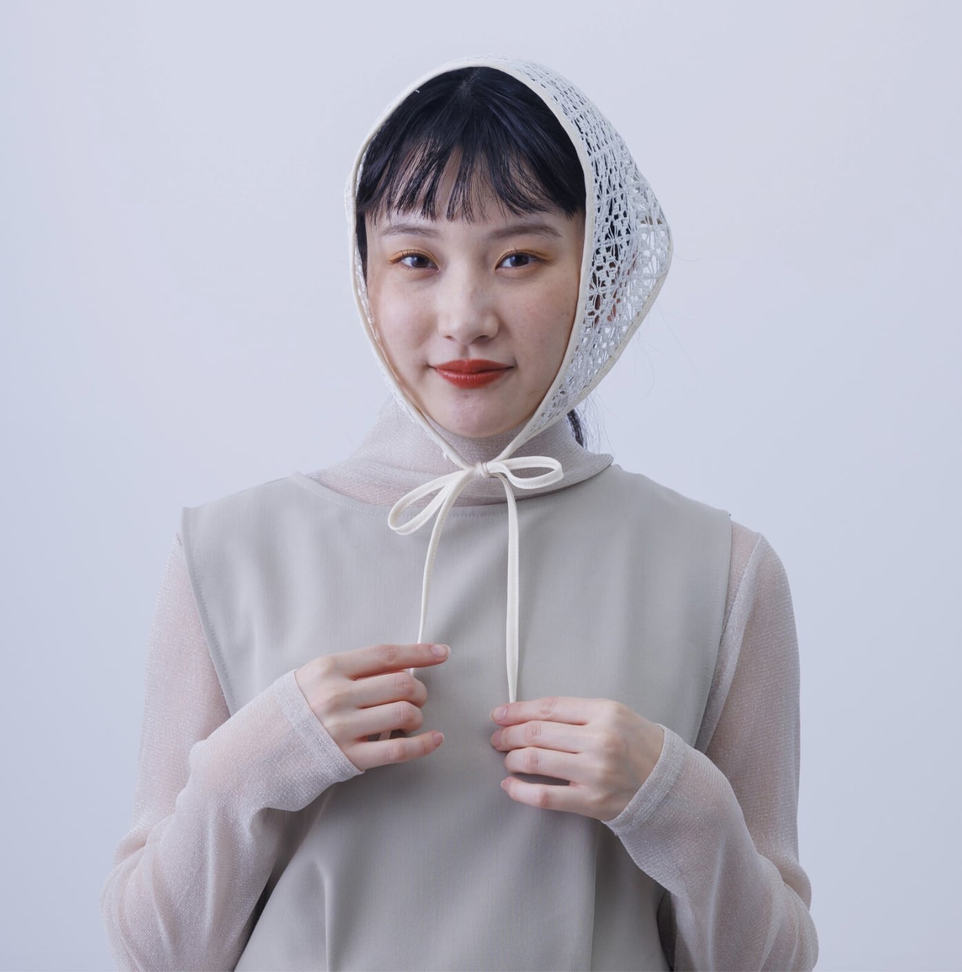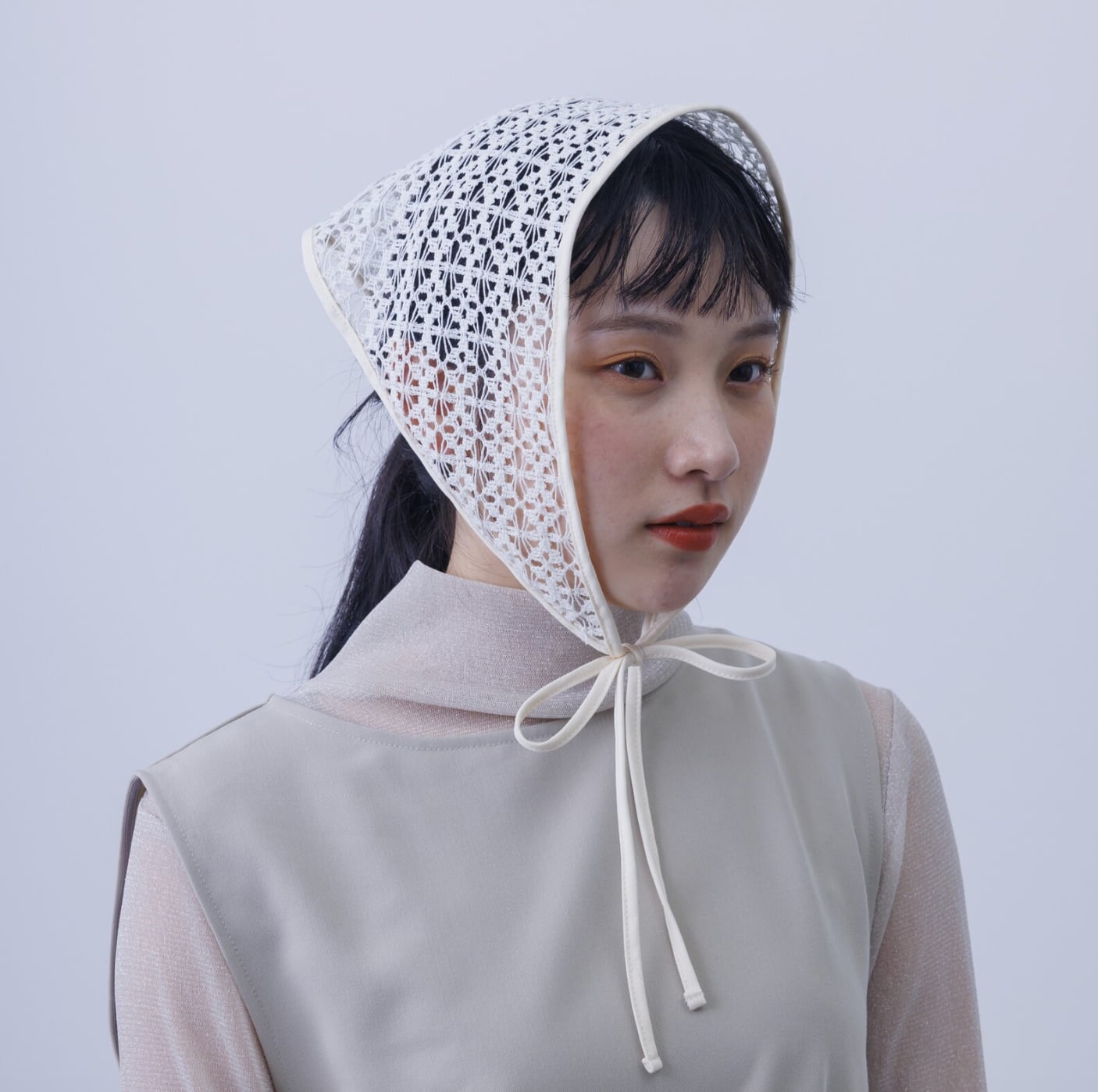 ■繊細なレース素材が可憐な印象のバブーシュカ。