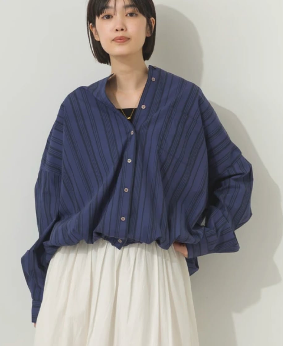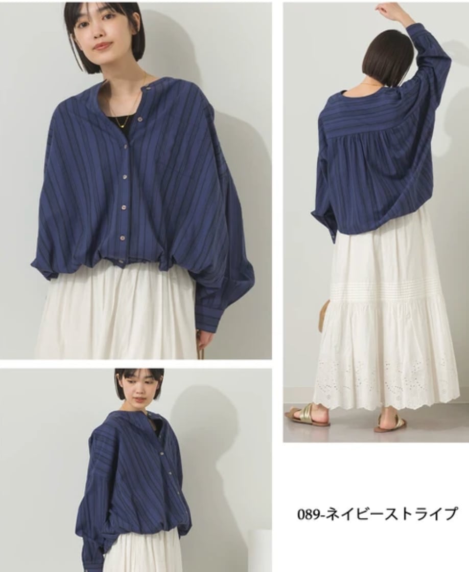 ◆This shirt features a band collar that flatters the face and a sophisticated silhouette with ample gathers at the back.