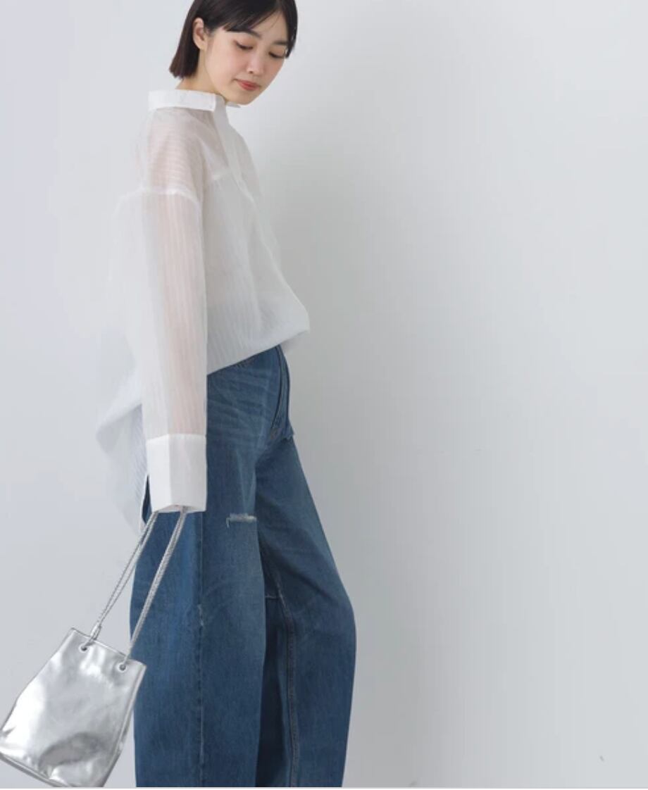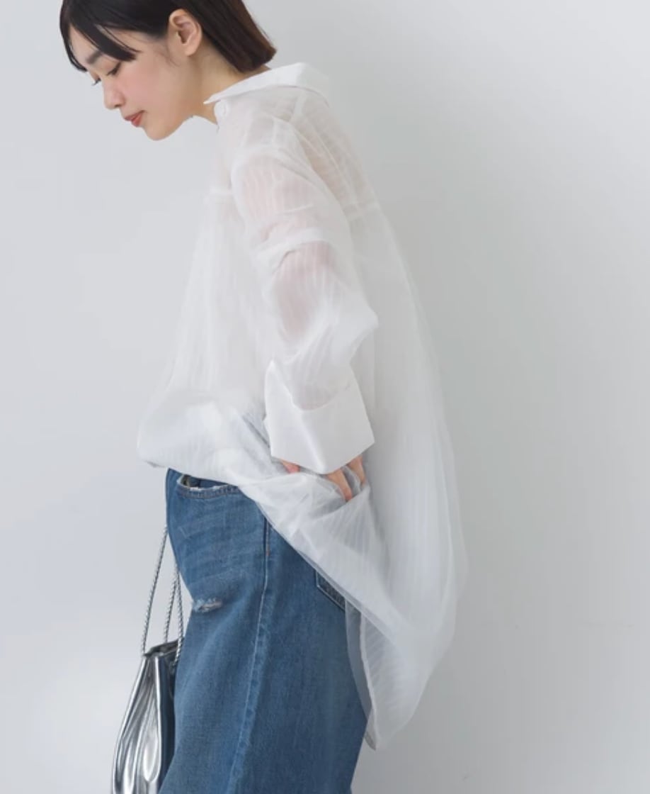 ほんのりとした透け感が抜け感と女性らしさを演出しながらも、甘くなりすぎない絶妙な