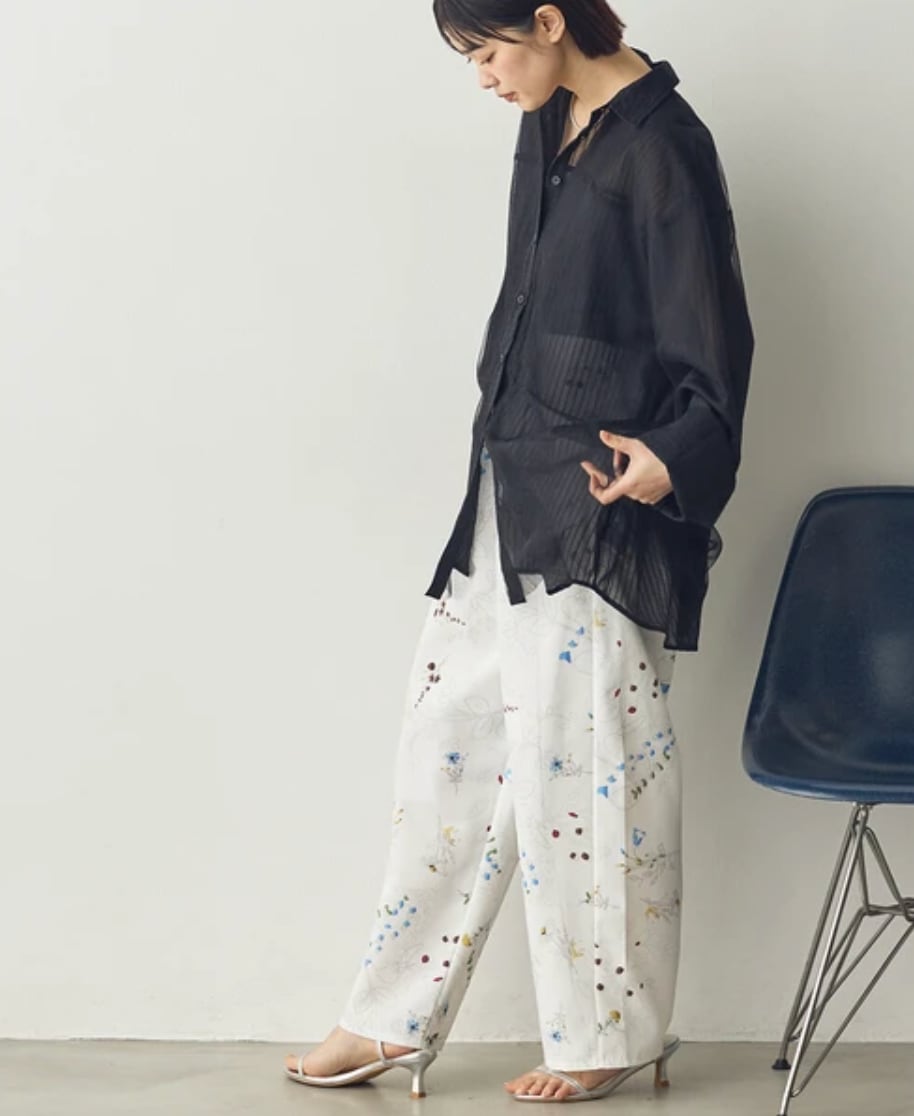 軽やかなシアー素材が空気を含んでふんわりと揺れ、動くたびに生まれる奥行きのある表情が、
