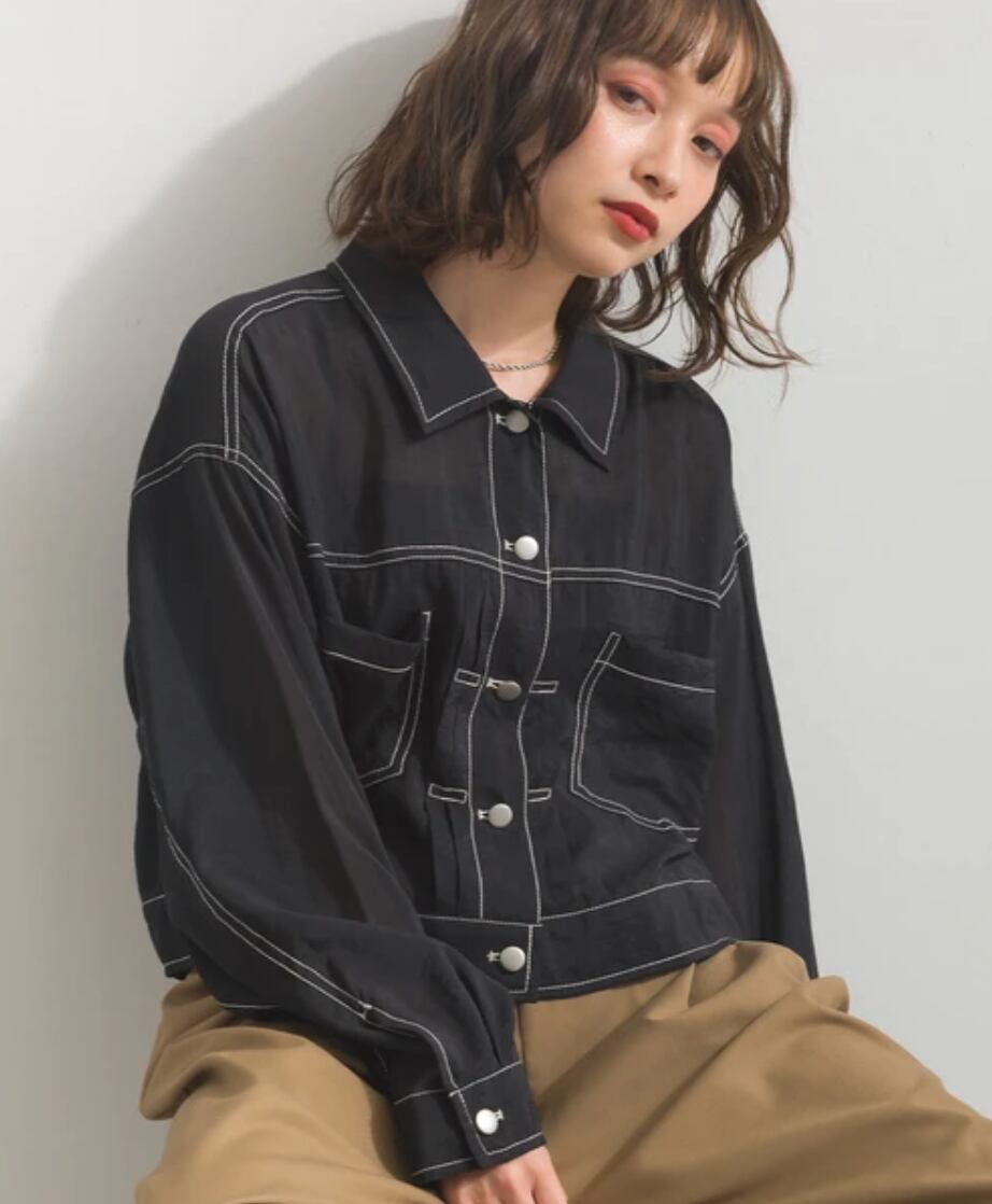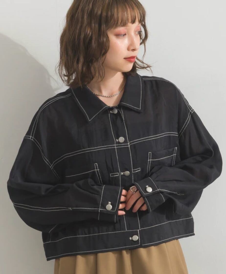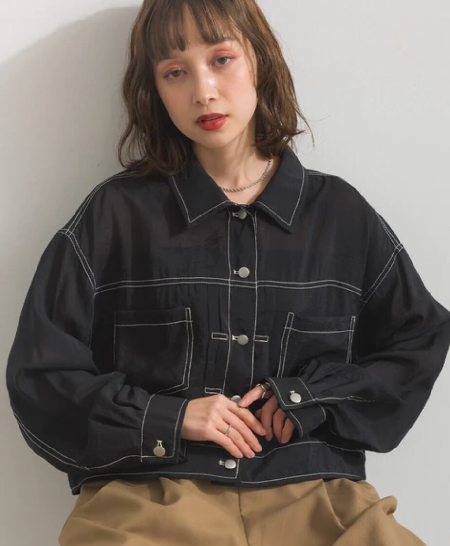 ■ 配色ステッチがアクセントになったシアー素材のGジャン。
