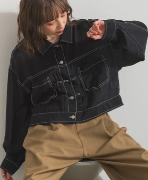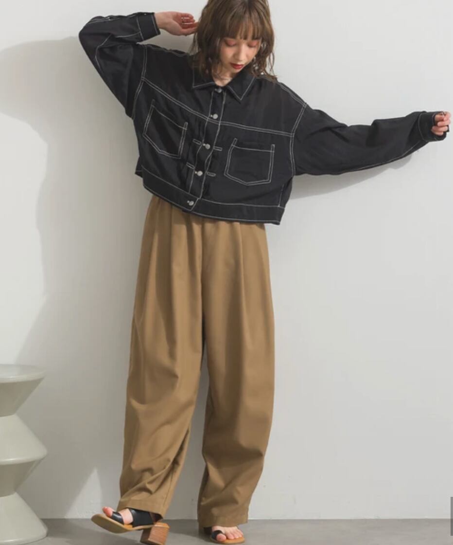 ゆったりとしたオーバーシルエットでラフに羽織れ、ショート丈デザインがバランスよくスタイルアップ見えも叶える1枚。