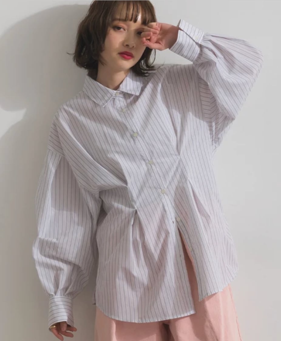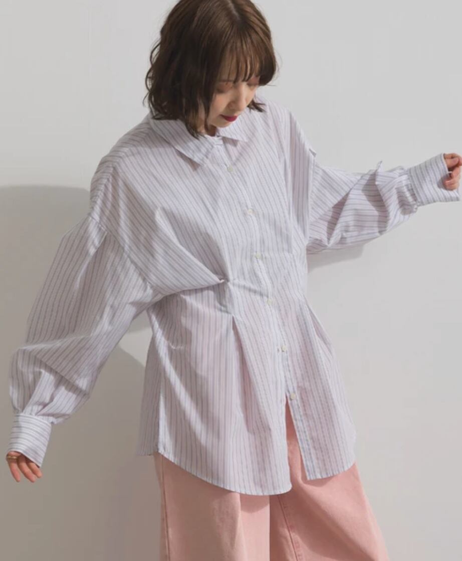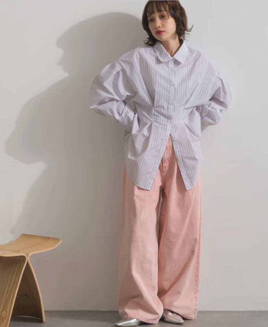 ウエスト位置にタックを入れることで、自然とシルエットに立体感が生まれ、ゆったりとしたサイズ感でもメリハリのある着こなしが叶います。