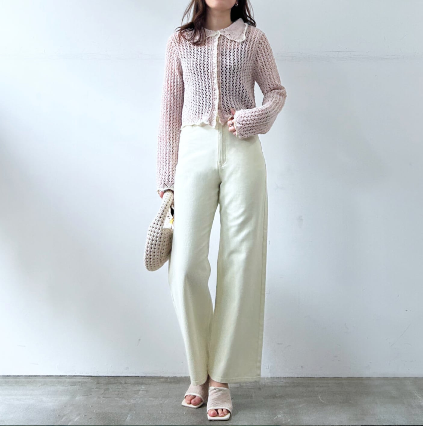 軽やかな透け感と立体感のある編地が、スタイリングに奥行きをプラスします◎