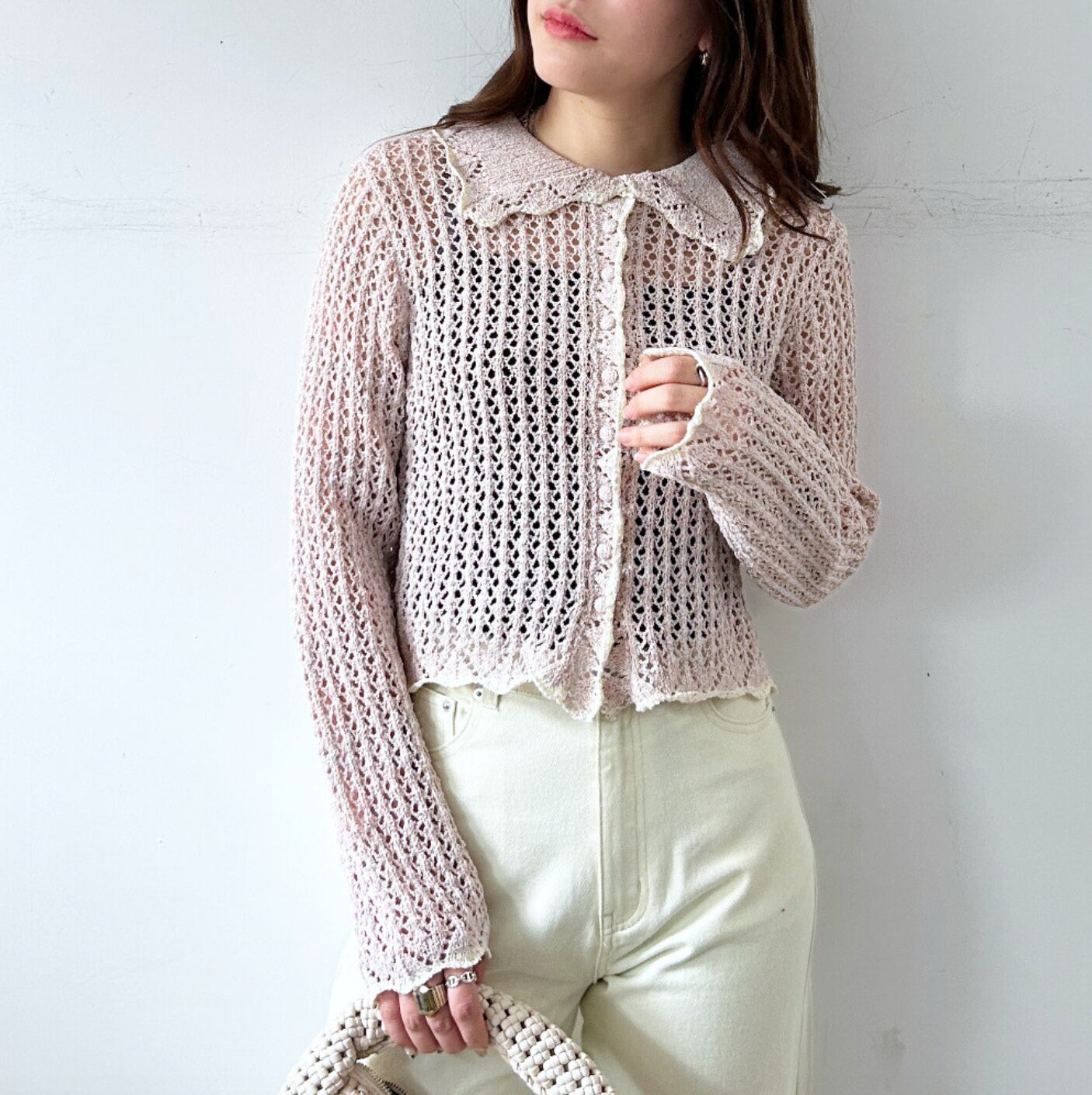 ナンバーミーTOKYO"MESH POLO KNIT CARDIGAN"PINK