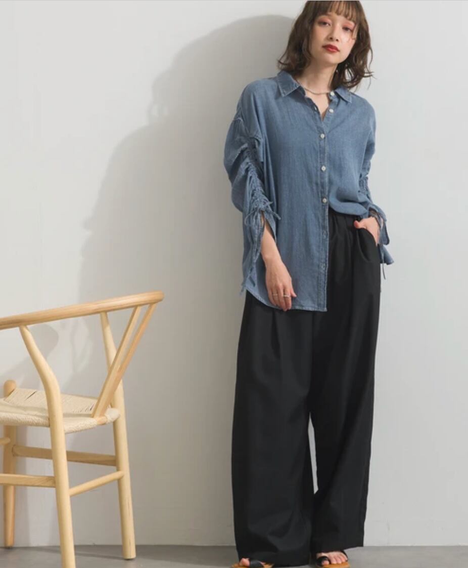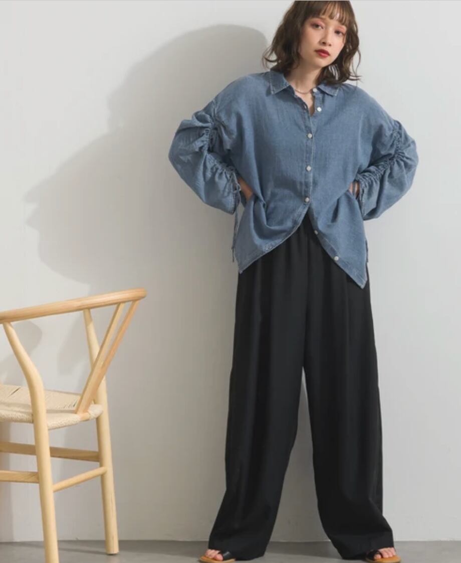 袖部分はシャーリング仕様になっており、立体感のあるボリュームスリーブが女性らしい印象に。