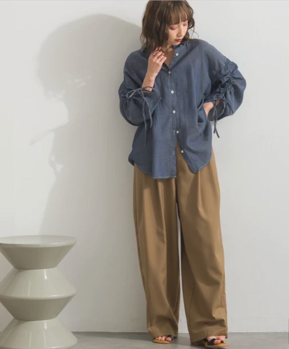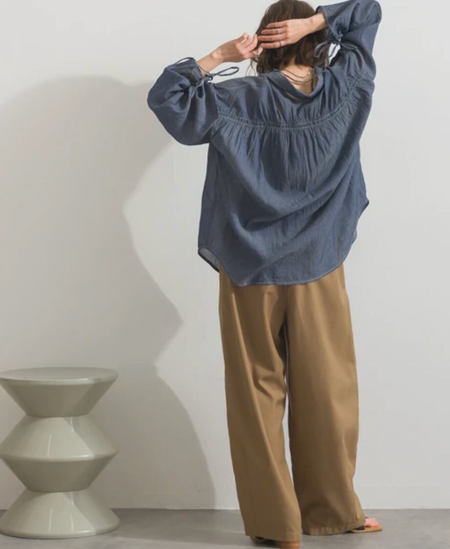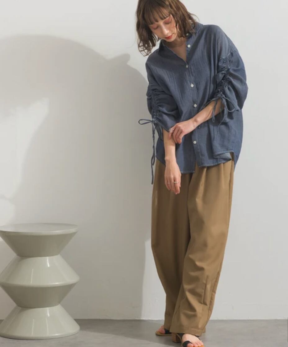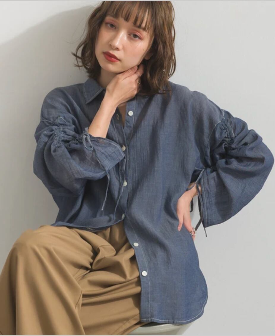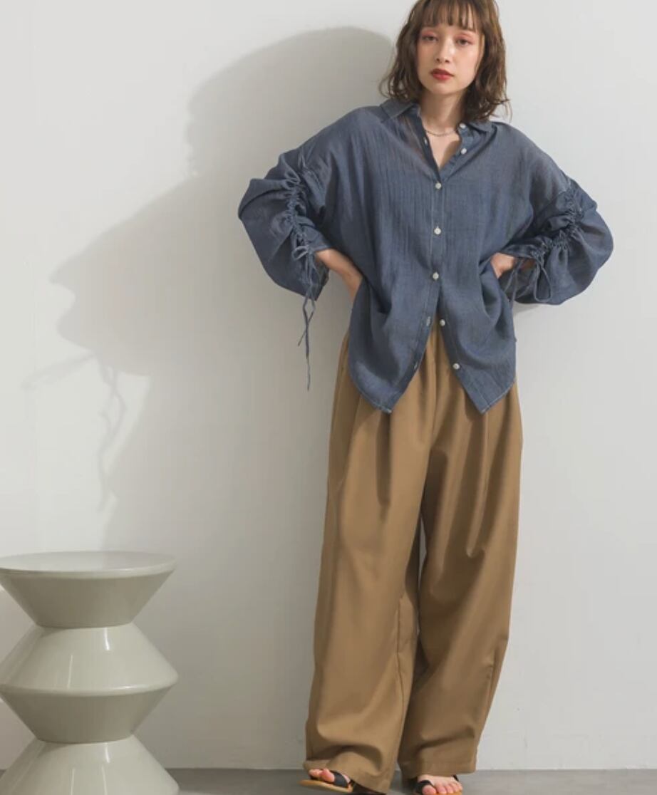 袖部分はシャーリング仕様になっており、立体感のあるボリュームスリーブが女性らしい印象に。
