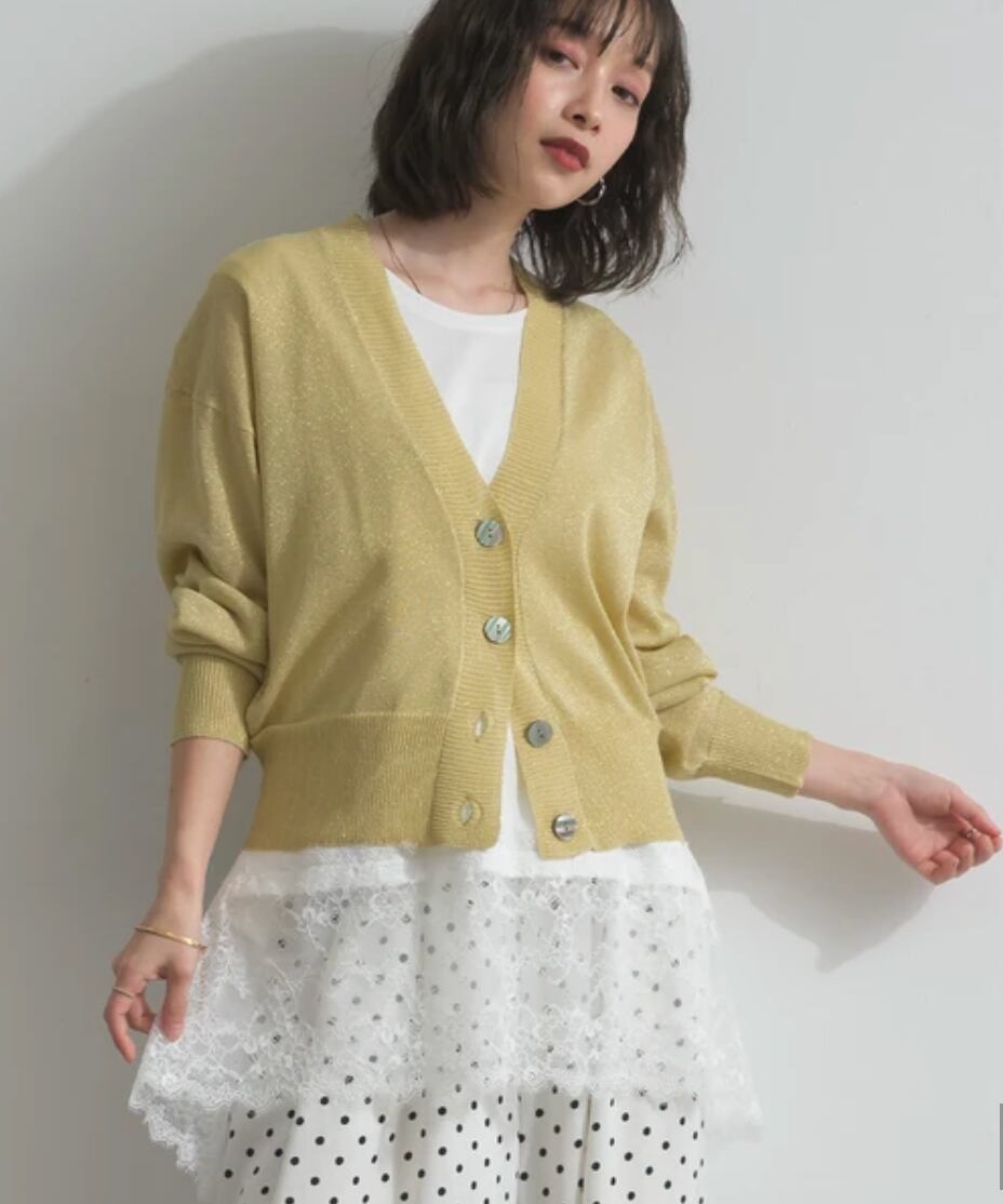 ナンバーミーTOKYO" LAME V KNECK KNIT CARDIGAN"YELLOW