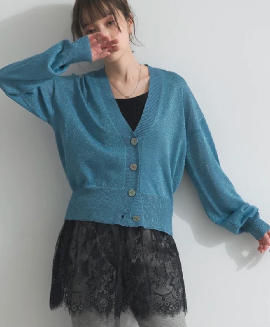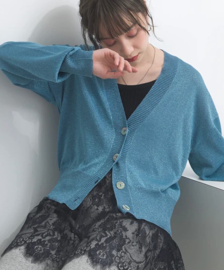 ナンバーミーTOKYO" LAME V KNECK KNIT CARDIGAN"BLUE