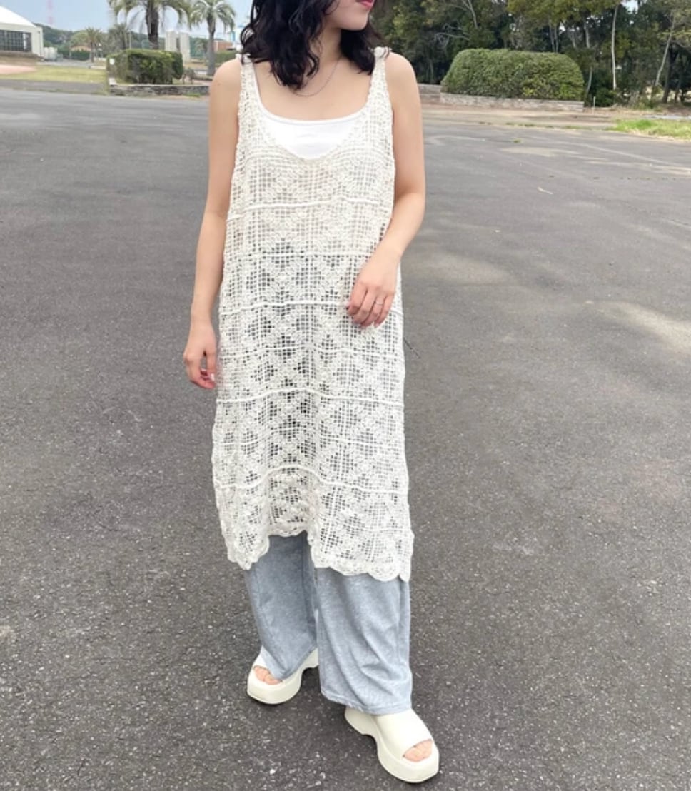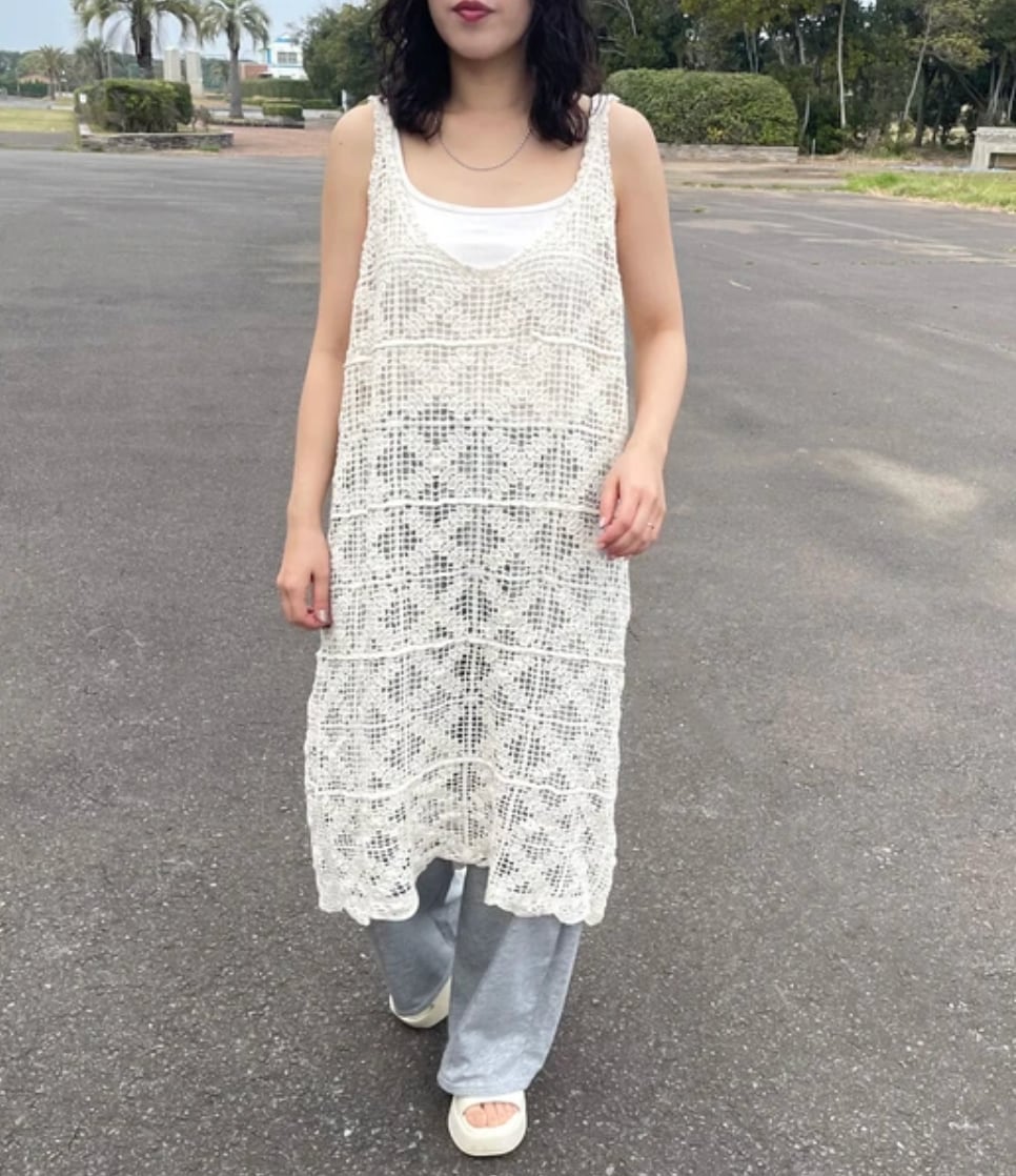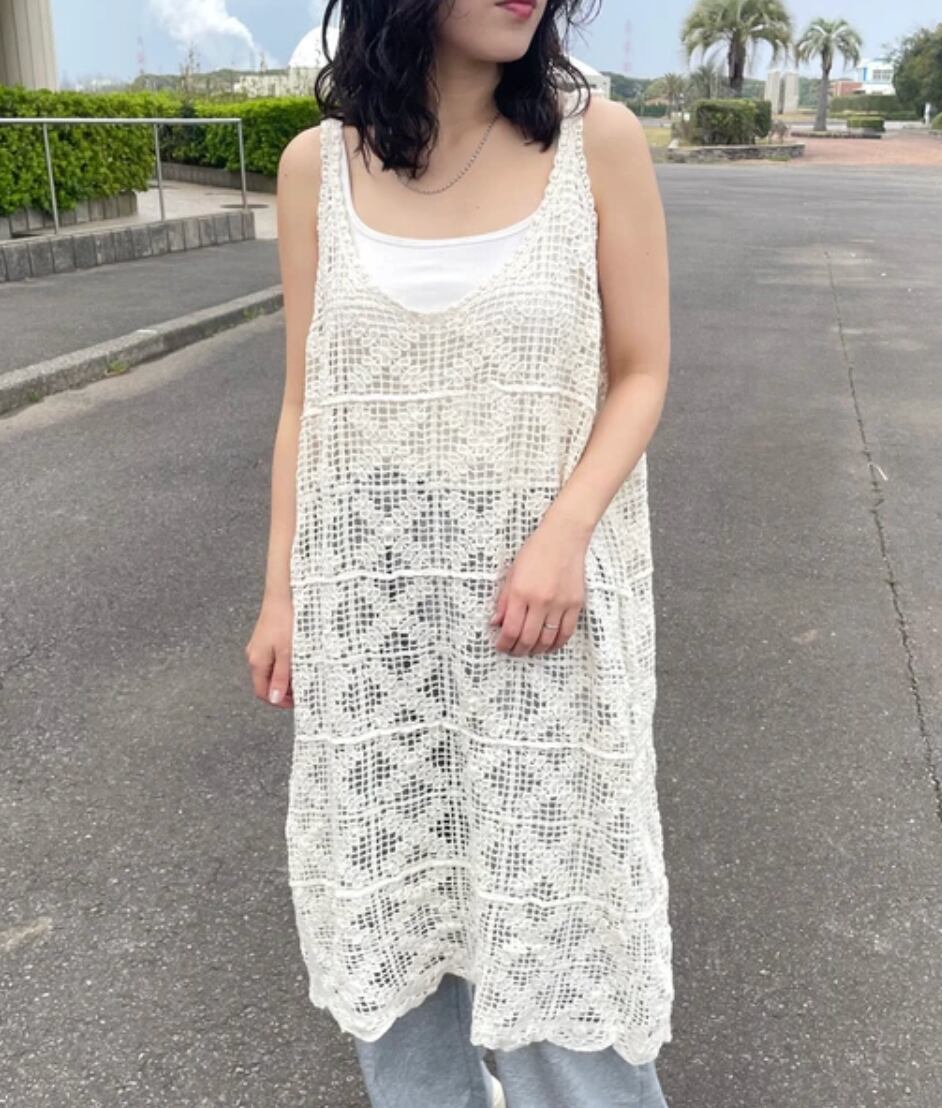 ■ シーズンムード高まるクロシェ編みのキャミワンピース。