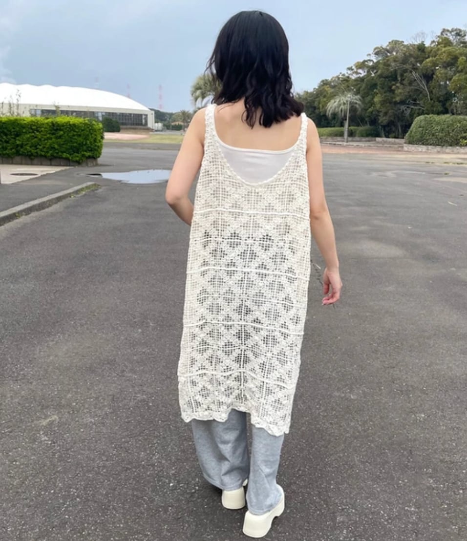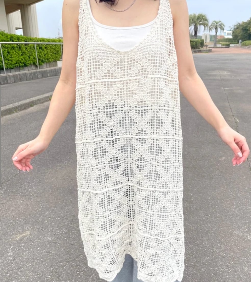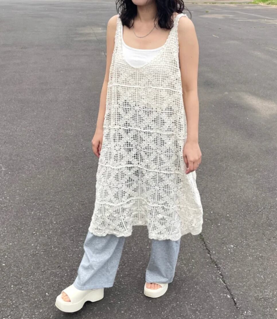 ■ シーズンムード高まるクロシェ編みのキャミワンピース。