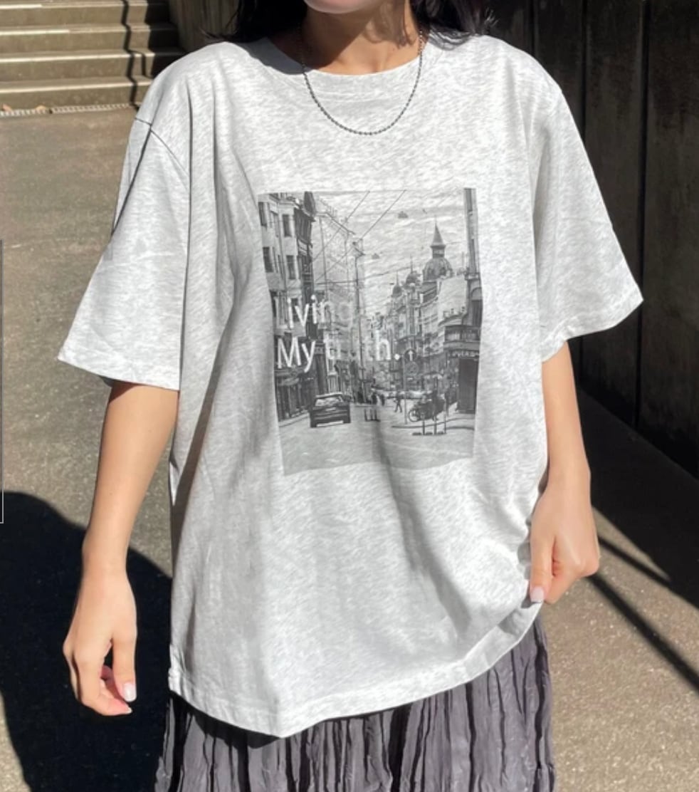◆A simple yet striking big T-shirt with a striking monochrome photo print.