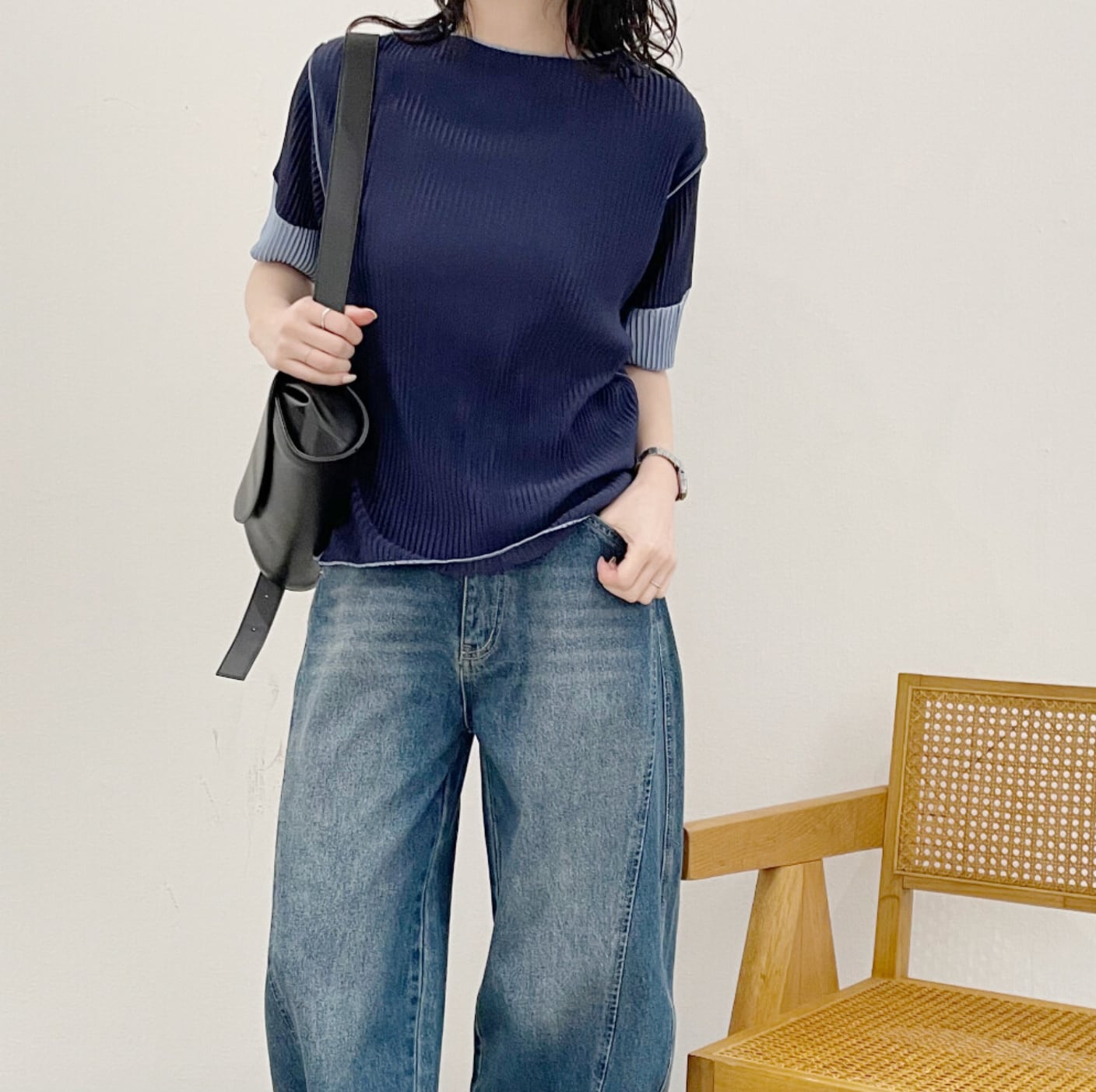 ナンバーミーTOKYO"PLEATS BY COLOR TEE"NAVY