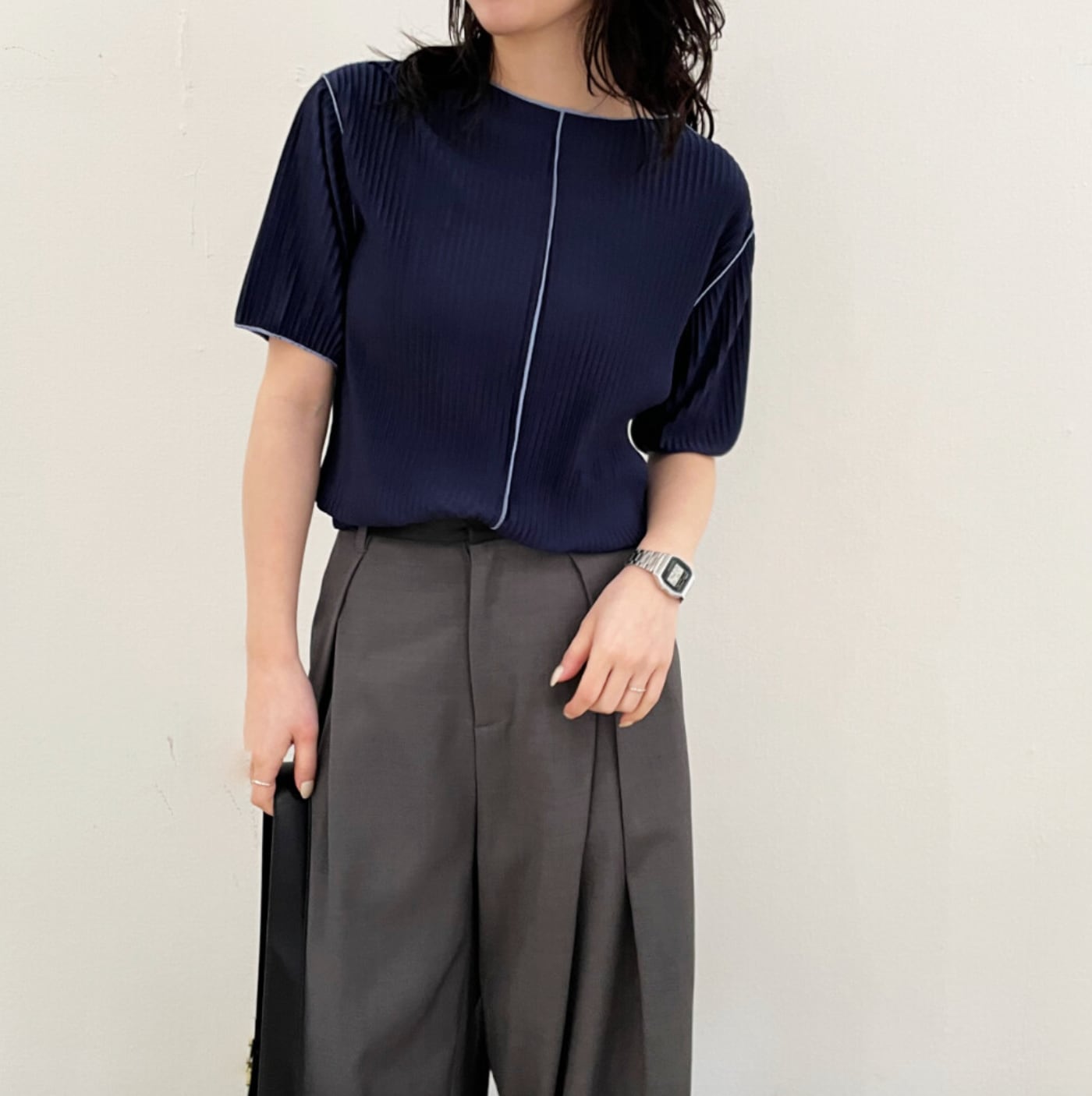 プリーツ素材で、ストレスフリーなフィット感。
