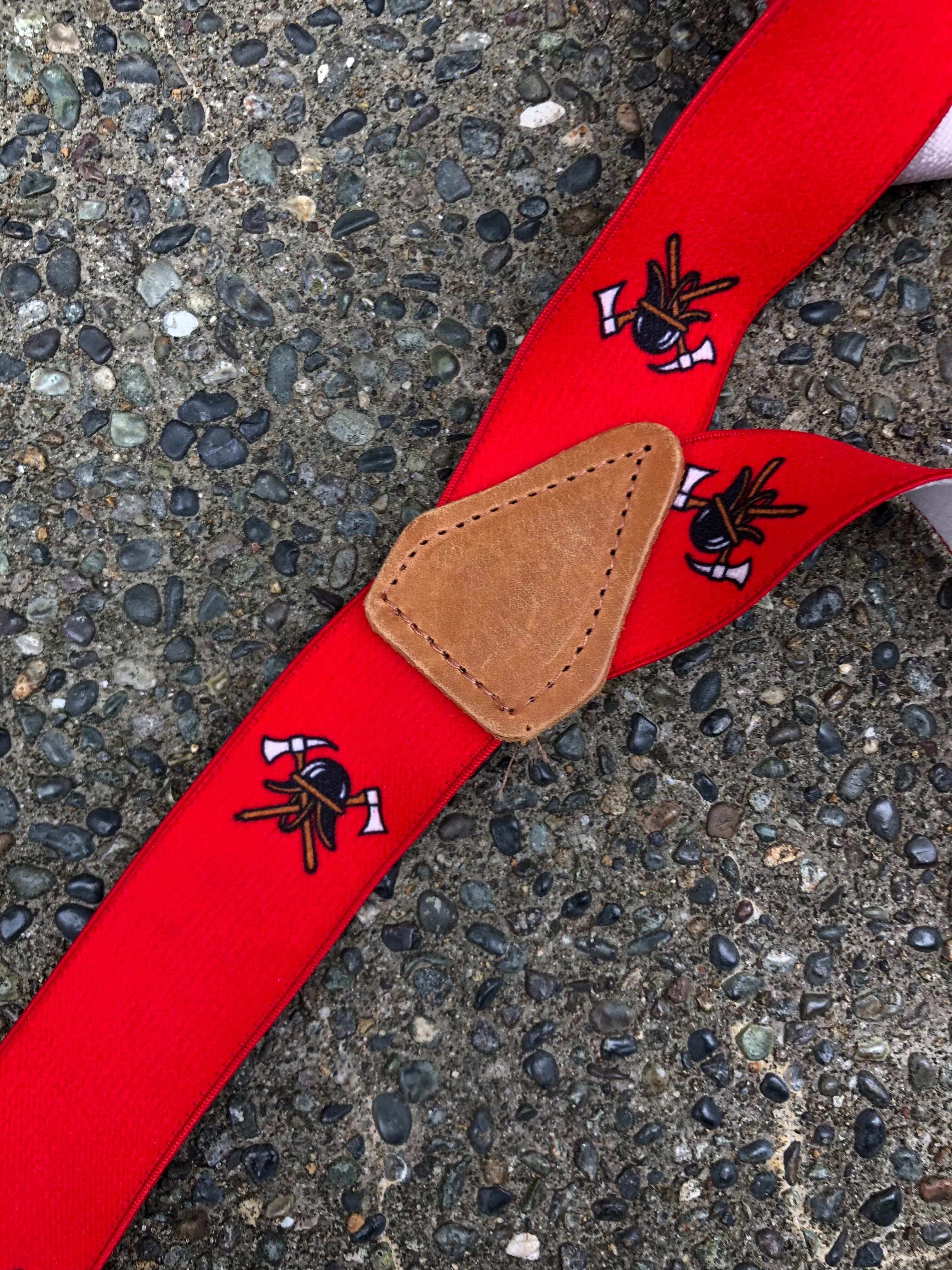レッドカラーに海賊のイラストがプリントしていて個性が光る一本。