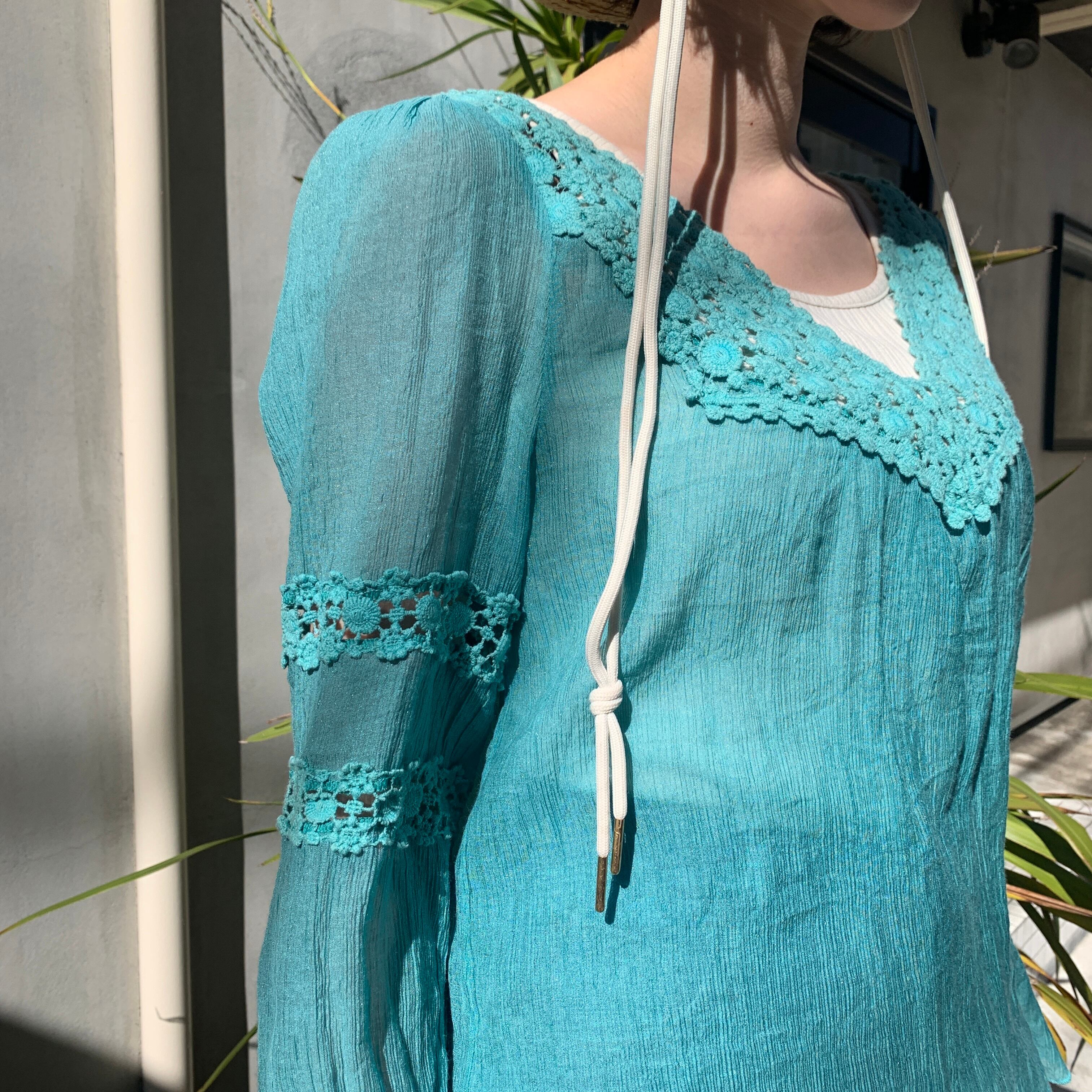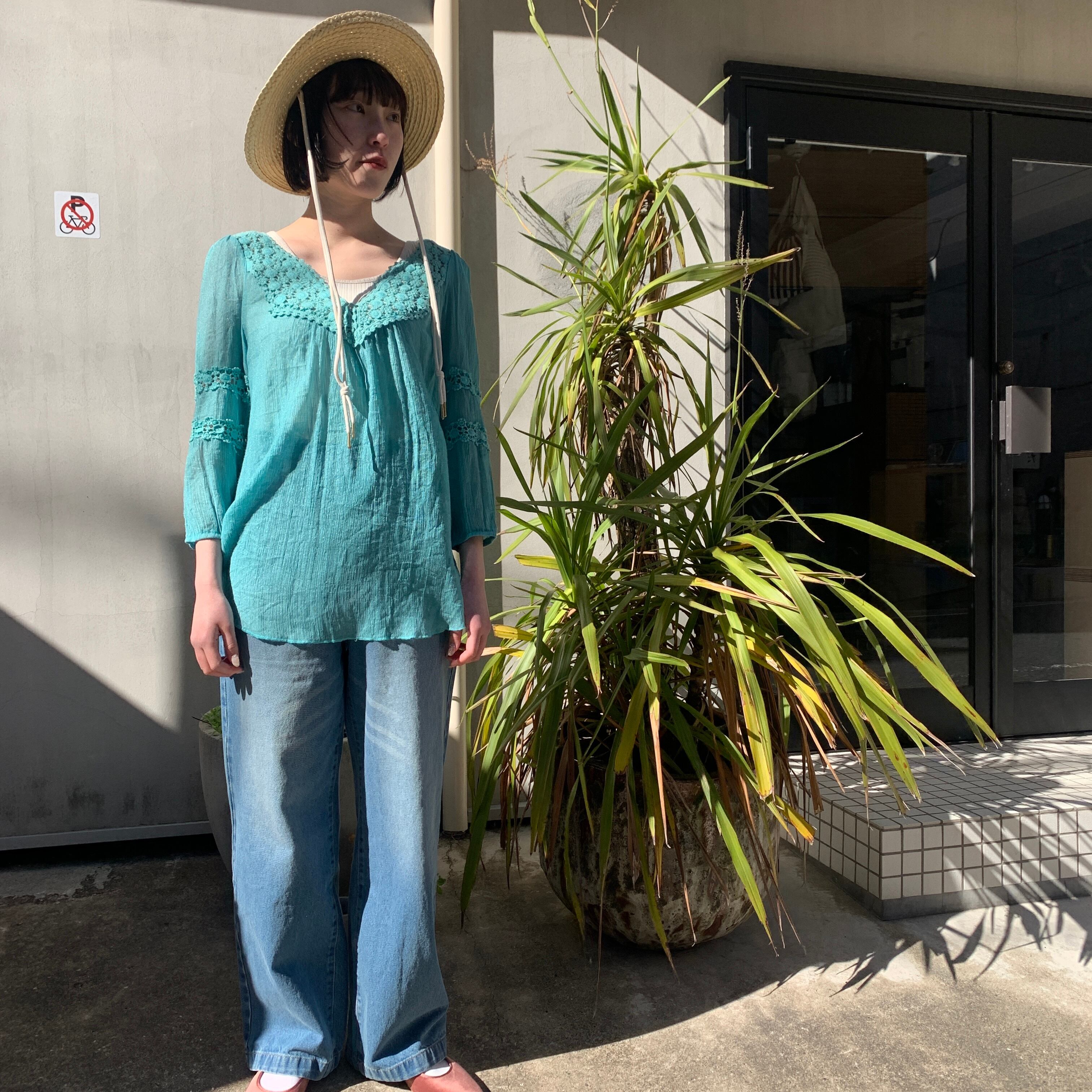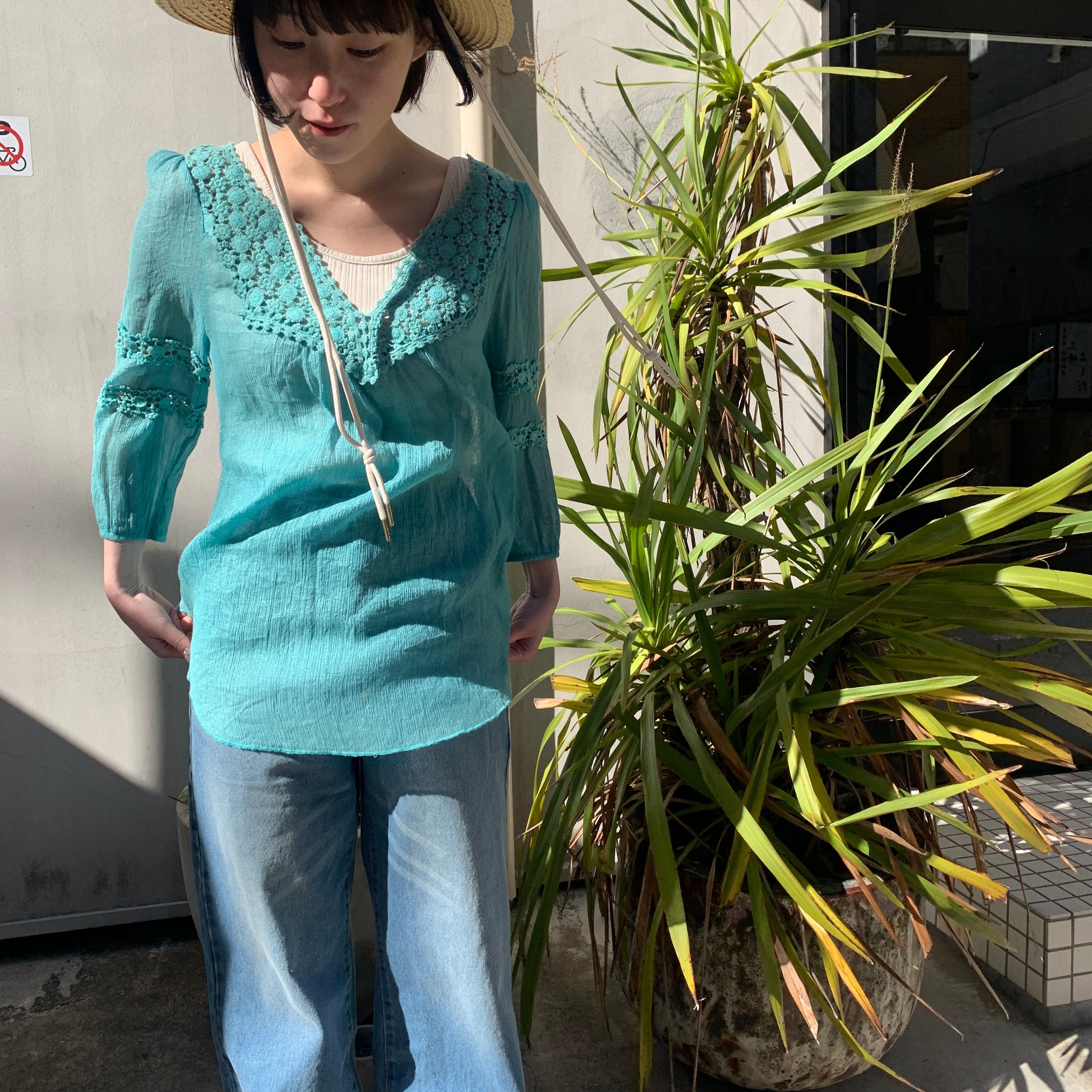 ■人気のインド綿の夏らしいミントグリーンブラウス。