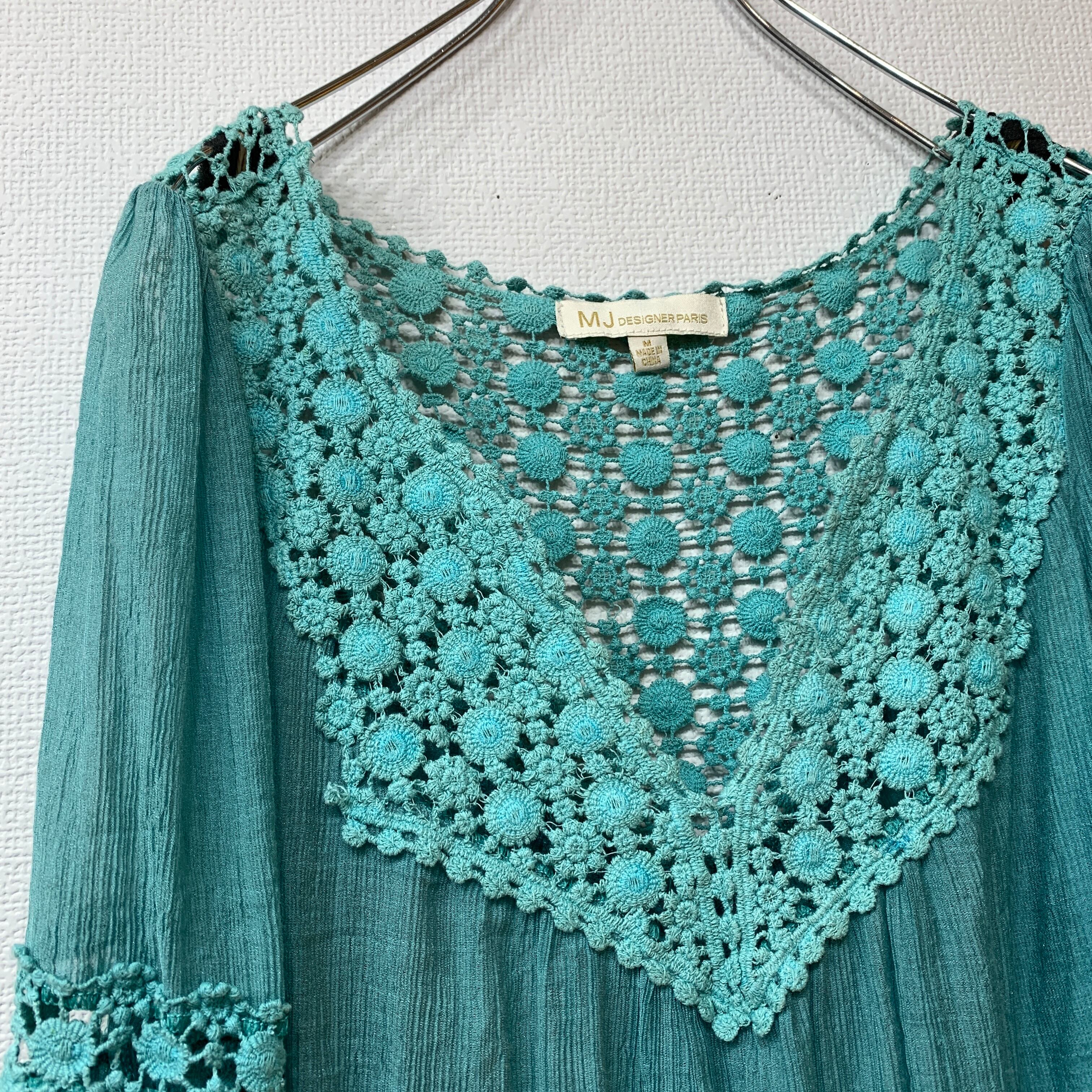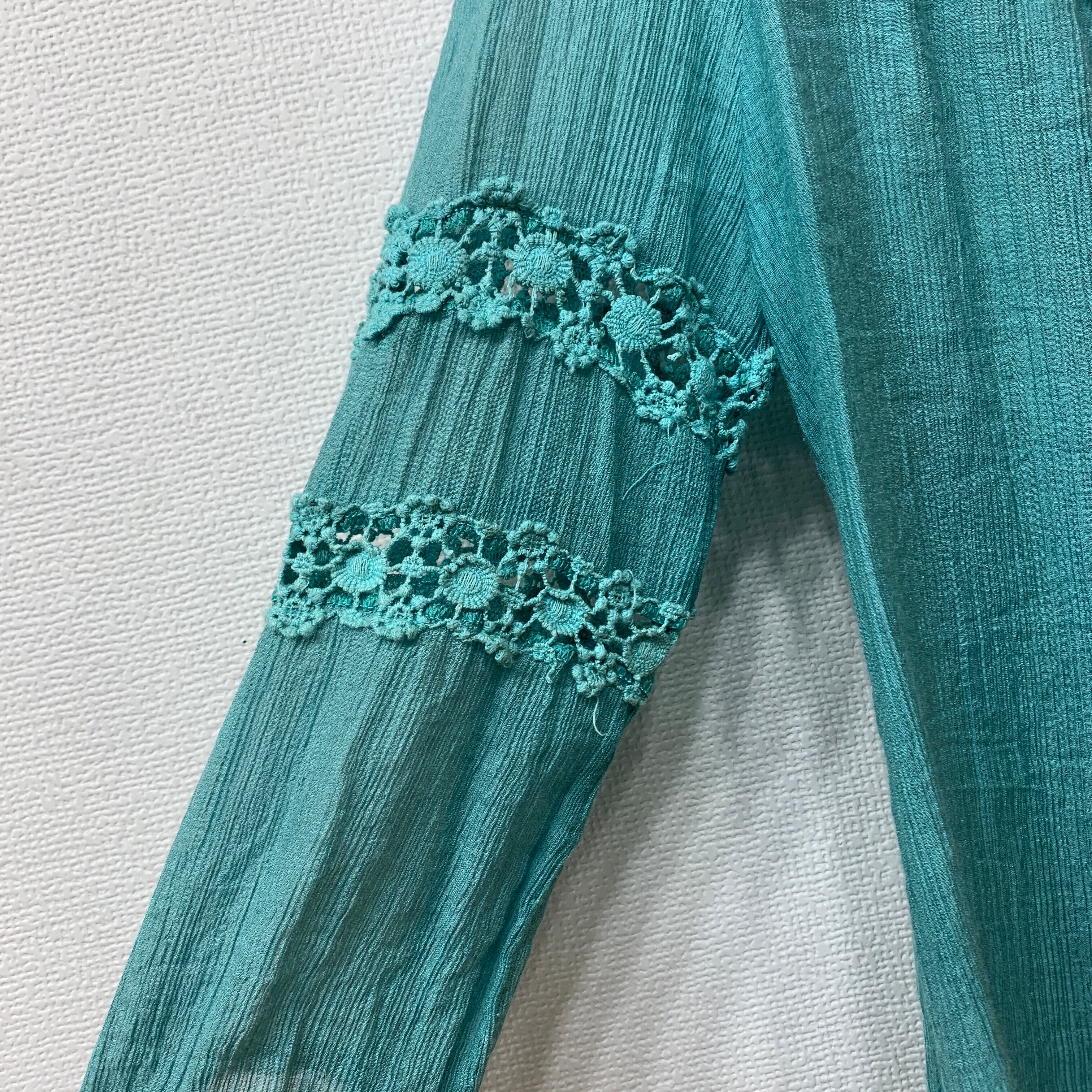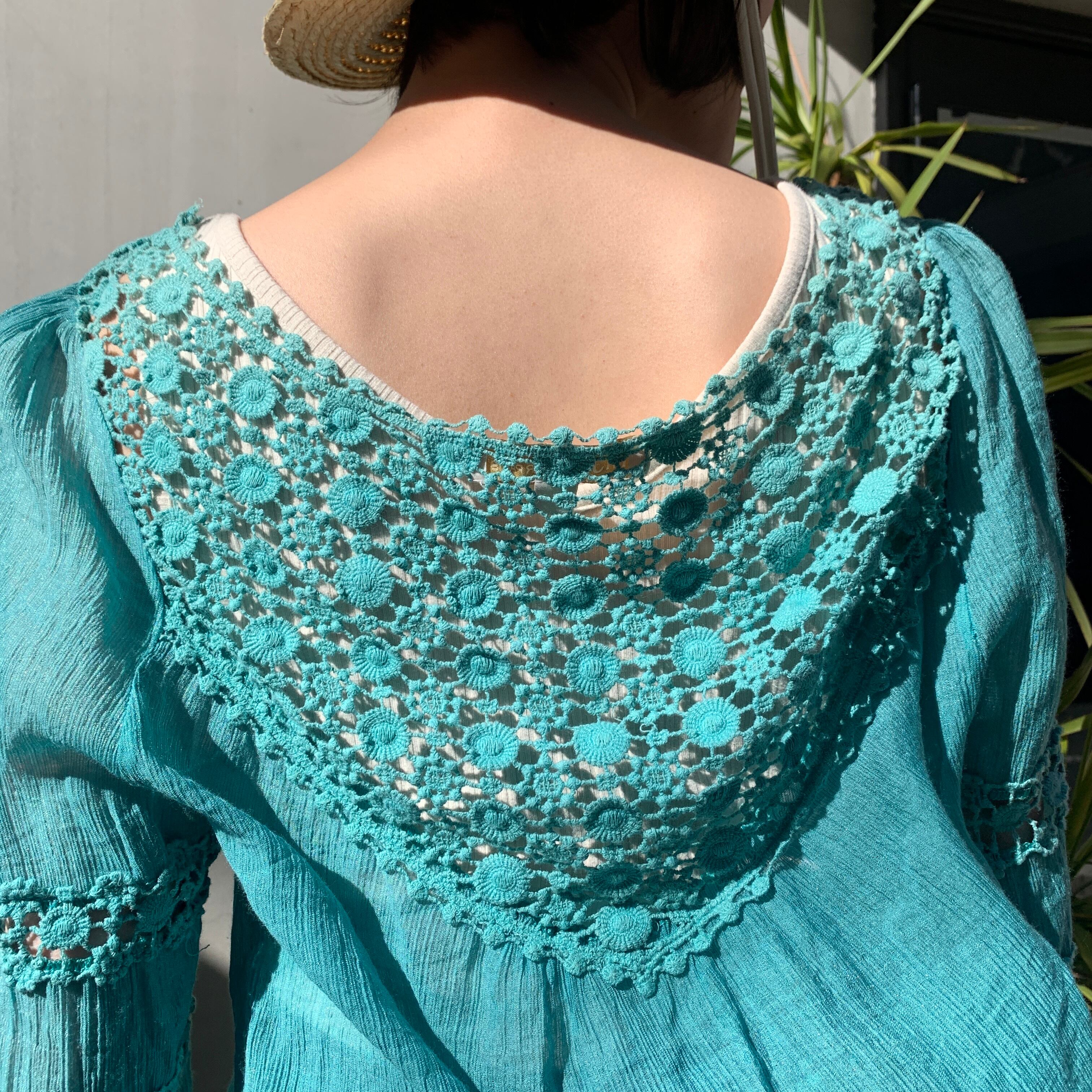 ■人気のインド綿の夏らしいミントグリーンブラウス。