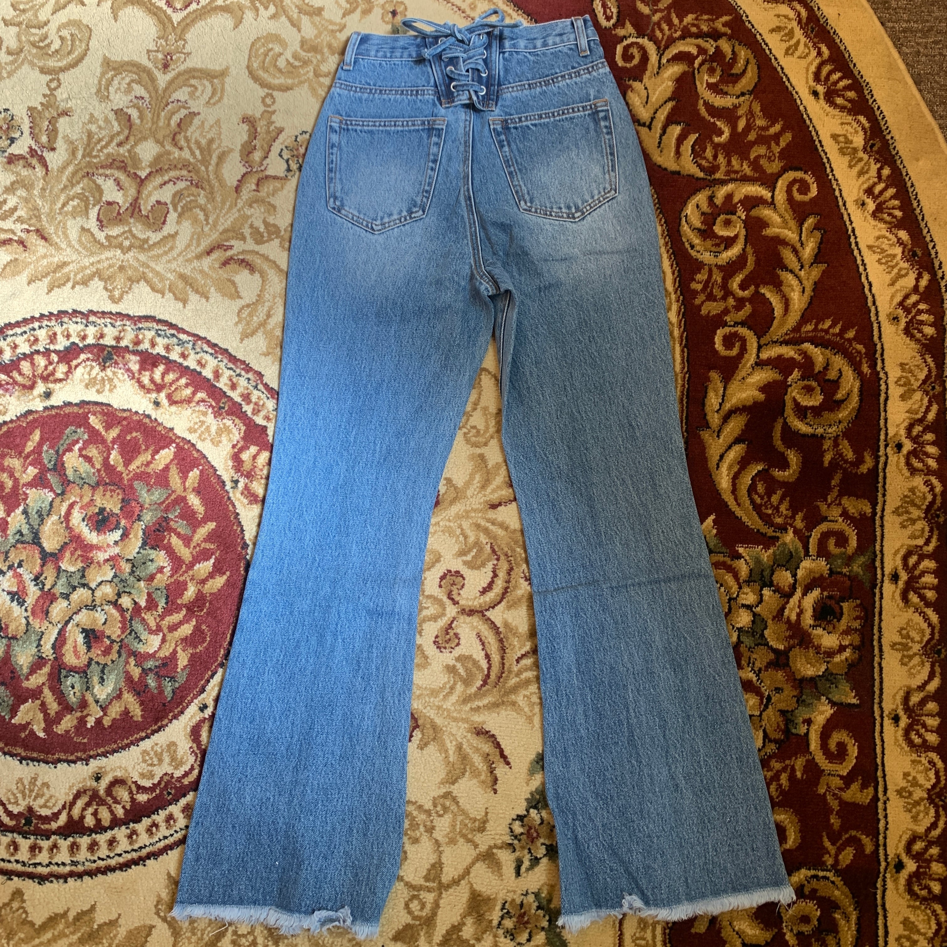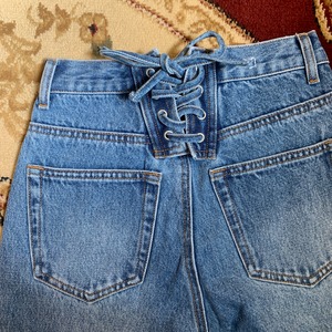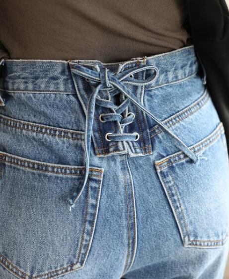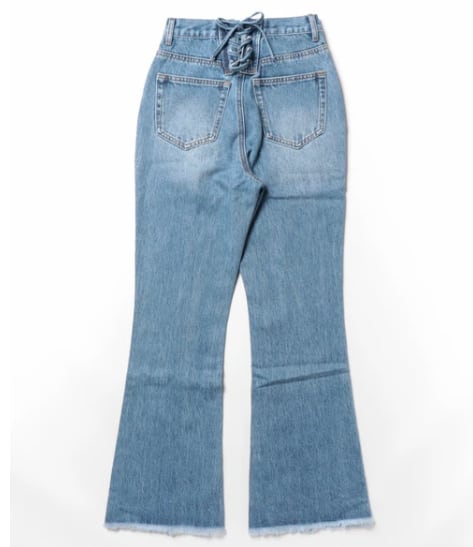 ■後ろがレースアップになっているセミフレアの脚長見えデニム!
